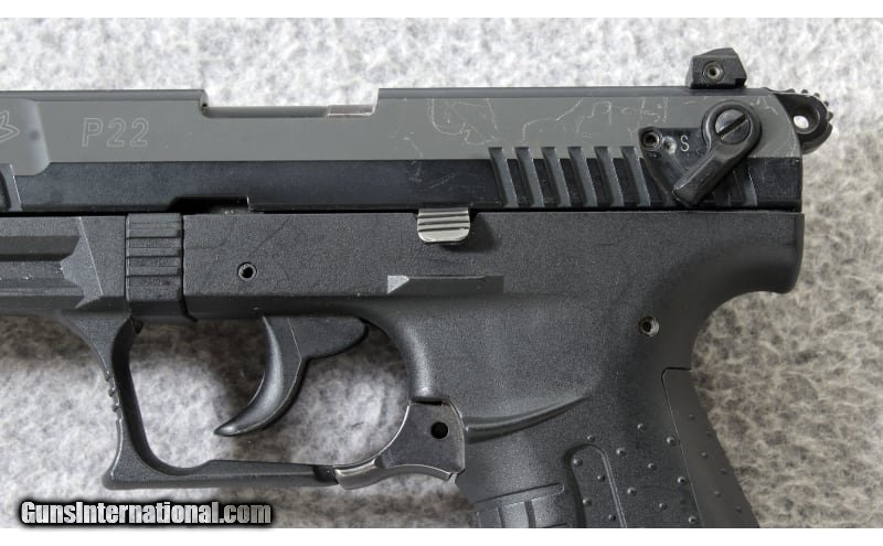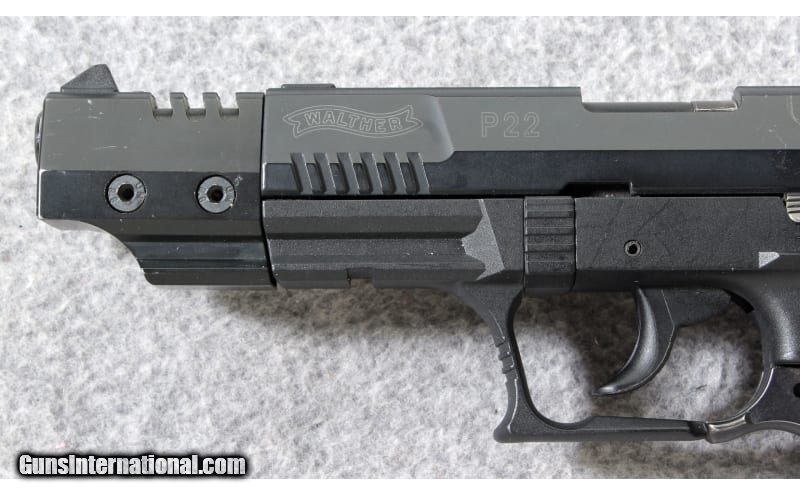Description: The Walther® P22 Target Double-Action/Single-Action Semi-Auto Pistol is one of the first tactical-style semi-auto .22 LR on the market. With its sleek looks, it was a big hit from launch. The slide features angled cocking serrations in the front and rear, polymer sights, and a safety selector without the de-cocker function. With the P22 Target Model you get an extended barrel and slide extension with relief cuts on top. The frame has great ergonomics with an ambidextrous paddle-style magazine release, a unique takedown lever you simply pull downward, a Picatinny accessory rail, and a great trigger. The grip texture flows into the pinky rest of the magazine. The Walther P22 is hammer fired and operates in both double and single action. Made in Germany 2002. .22 Long Rifle SOLD Metal Condition: Good with scratches and wear on some sharp edges Bore Condition: Excellent Barrels: 5 inch threaded barrel Triggers: Double/single action Weight: 22 oz. Sights: Adjustable three dot sights Item Location: Lehi, UT |