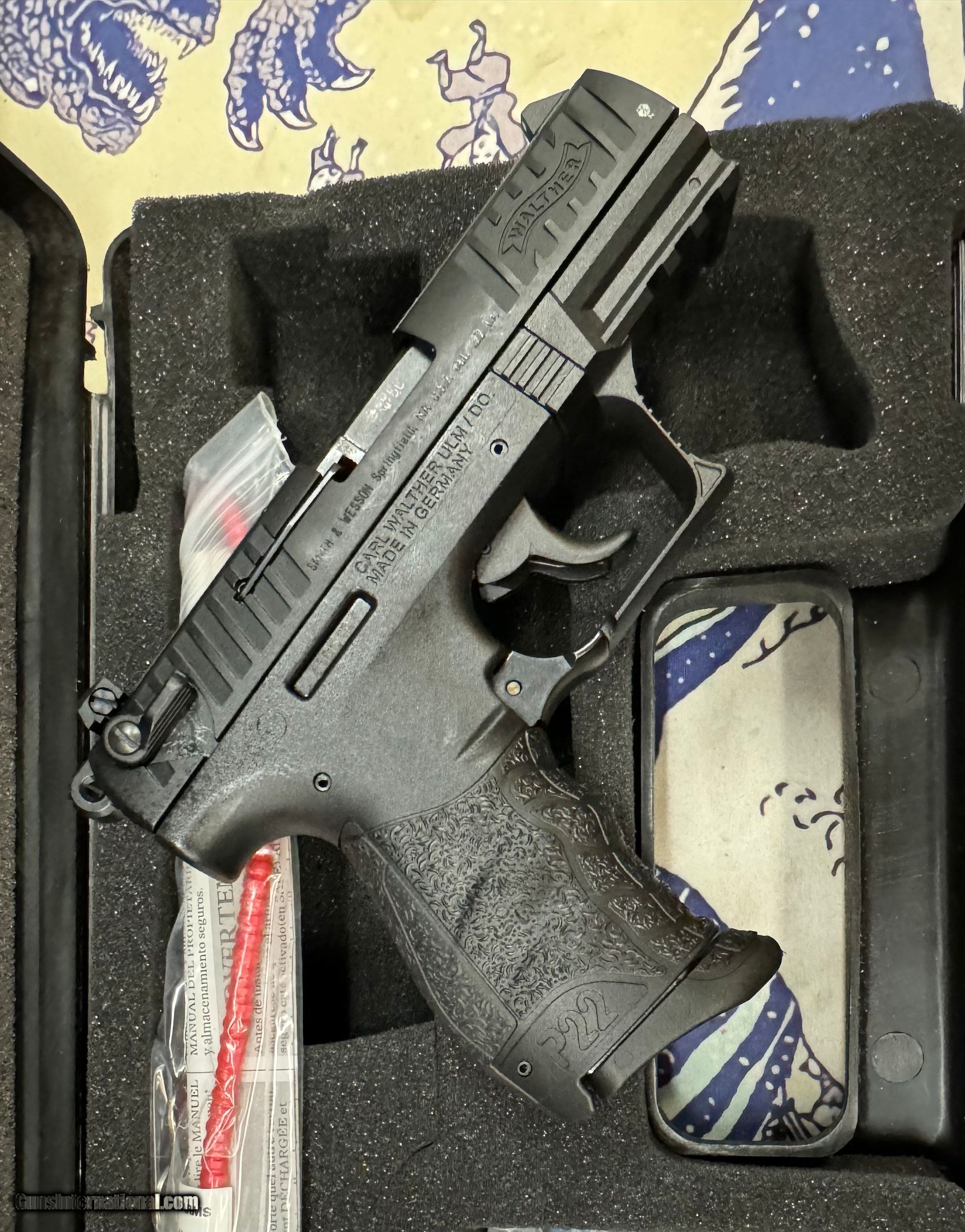Description: Guns Listing ID: 1214480 Walther Germany P22 pistol with box SOLD Manufacturer: WALTHER Model: P22 Caliber Info: .22 LR Condition: Used - Non-Certified Barrels: 4 BARREL Finish: BLACK |