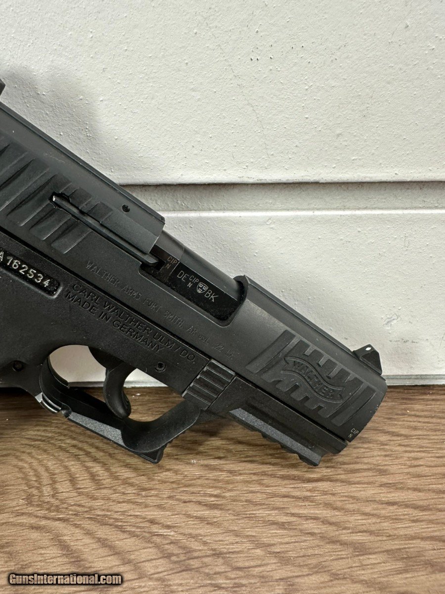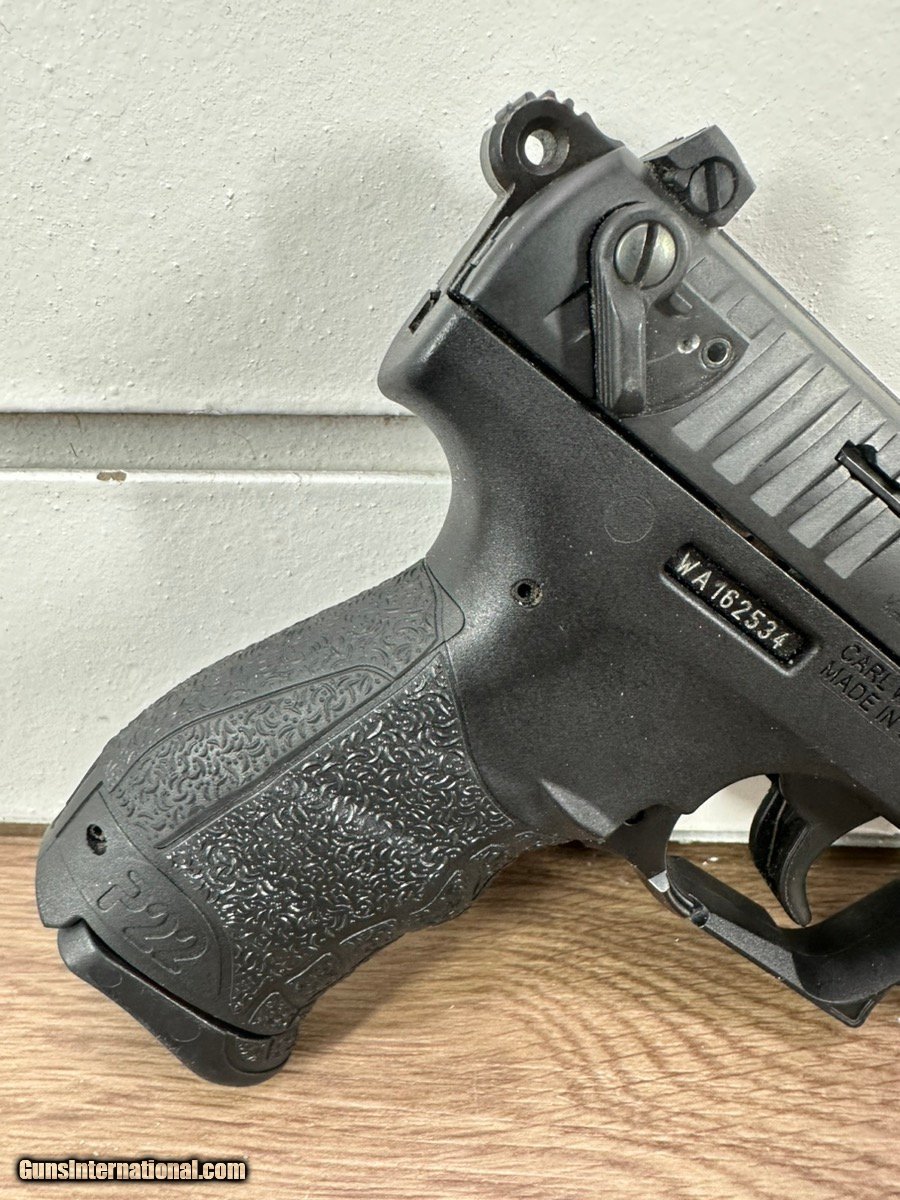 Description: Guns Listing ID: 1343849 PISTOL: WALTHER ARMS MODEL WALTHER P22, SERIAL NUMBER WA1625534, SEMI - AUTOMATIC, 22LR, BLACK (MATTE), INCLUDES ONE 10 ROUND MAG, 3.5\" BARREL, USED BUT IN GREAT CONDITION. #WCP023853 SOLD Manufacturer: WALTHER Model: P22 Caliber Info: .22 LR Condition: Used - Non-Certified Barrels: 3.5 BARREL Finish: BLUE |