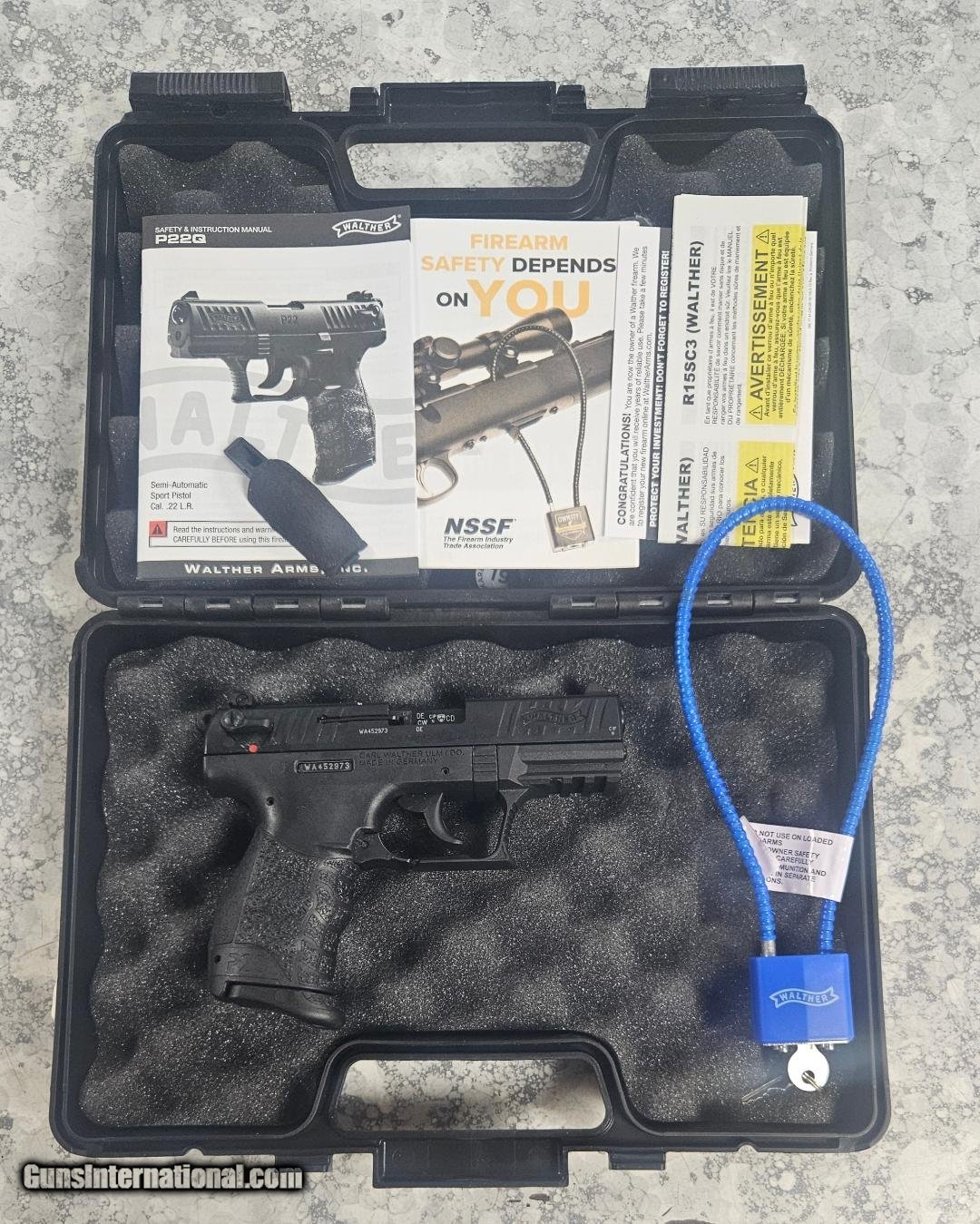 Description: Guns Listing ID: 1362902 THIS HANDGUN COMES WITH A 10 ROUND MAGAZINE AND ORIGINAL CASE. EXTRA BACK STRAP FOR GRIP INCLUDED. SOLD Manufacturer: WALTHER Model: P22 Caliber Info: .22 LR Condition: Used - Non-Certified Barrels: 3.42 BARREL Finish: BLACK |