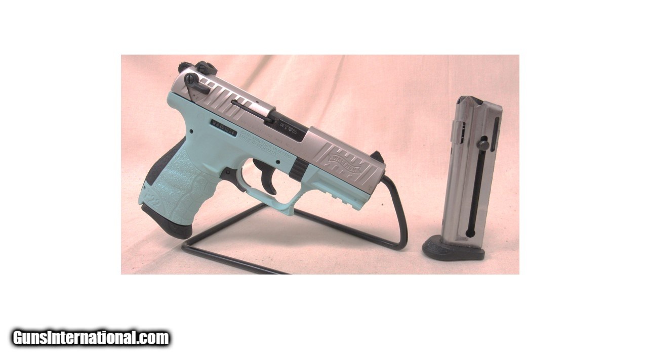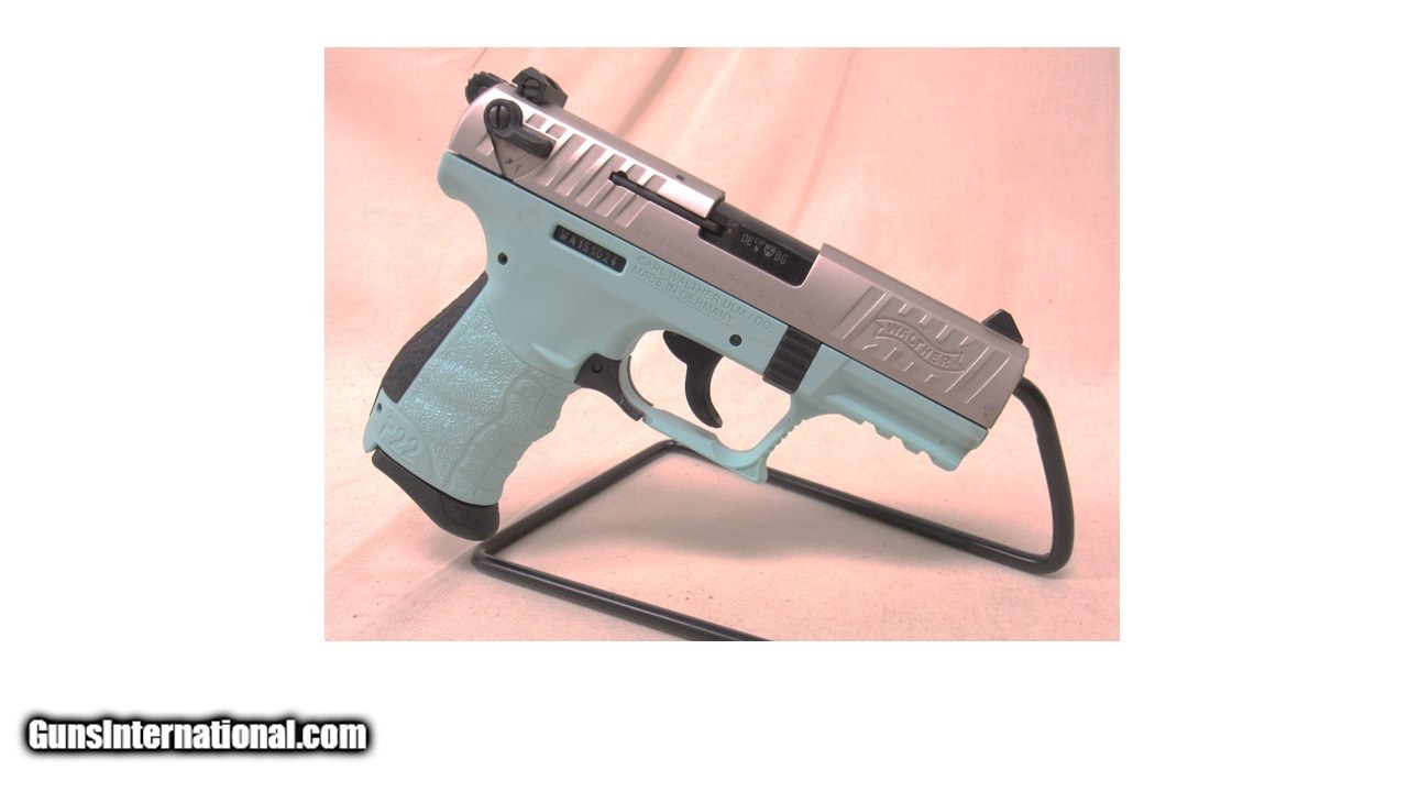 Description: Guns Listing ID: 463992 The Walther P22 is a compact semi-automatic pistol designed for versatility and ease of use. Featuring a durable polymer frame in a light blue color, it has a 3.25\" threaded barrel and a sleek silver slide. The pistol is equipped with white 3-dot adjustable sights for improved accuracy and a European-style magazine release for quick reloading. It comes with two 10-round magazines, making it a reliable choice for both beginners and experienced shooters. SOLD Manufacturer: WALTHER Model: P22 Condition: Used - Non-Certified Barrels: 3.25 Gauge Info: .22 LR Finish: two tone |