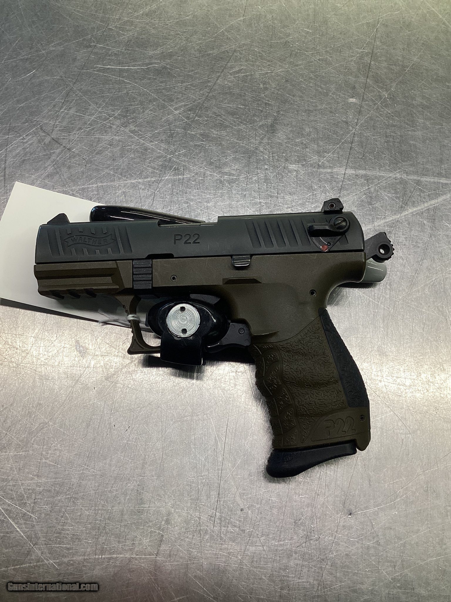 Description: Guns Listing ID: 469129 The ergonomic design and simple operation of the Walther® P22® makes it a fun semi-auto rimfire pistol for plinking and informal target shooting. The P22 operates with an external hammer and a double- and single-action trigger, a thumb safety blocks the firing pin, and an additional safety prevents the pistol from firing if dropped. The frame is constructed of black polymer with a nonslip cross-directional grip surface With case and two magazines SOLD Manufacturer: WALTHER Model: P22 Caliber Info: .22 LR Condition: Used - Non-Certified Barrels: 4 BARREL Finish: BLACK & GREEN |
