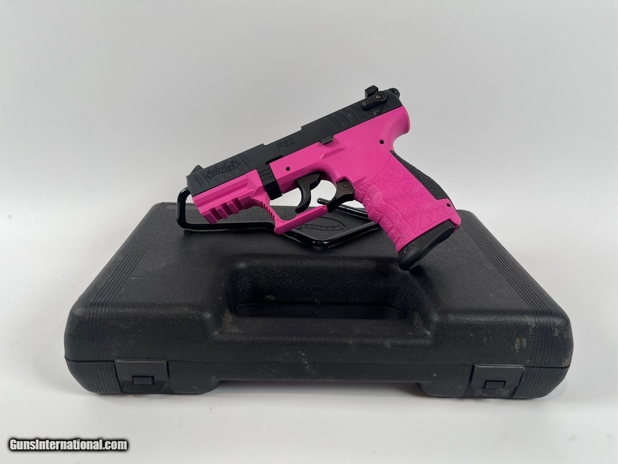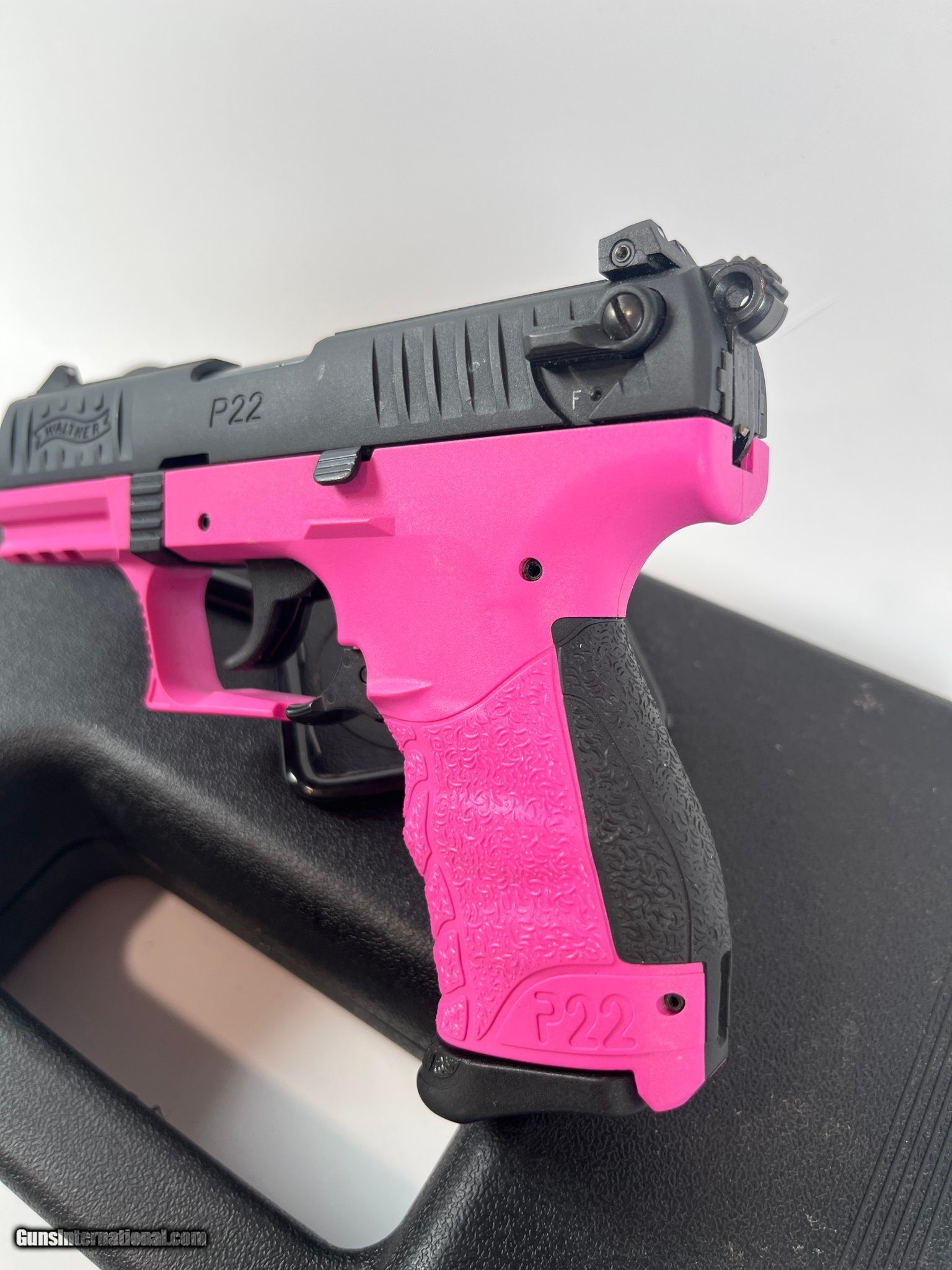 Description: Guns Listing ID: 543059 Walther P22 – .22 LR – Pink Frame – Very Good Condition Up for sale is a Walther P22 semi-automatic pistol chambered in .22 LR, featuring a distinctive pink polymer frame and black slide. Compact, lightweight, and easy to handle, the P22 is a popular choice for new shooters, range fun, or a reliable training tool that mimics centerfire handgun controls. This example is in very good condition, showing only light cosmetic wear from use. The pink frame is clean and intact, with no cracks or discoloration. The slide finish is in excellent shape with only light handling marks. Mechanically, the pistol is in proper working order with a smooth trigger, crisp reset, and reliable function. The bore is bright with strong rifling. The Walther P22 offers ambidextrous controls, adjustable rear sight, and a threaded barrel (on most models) for suppressed shooting. It‚s a fun, affordable way to build skills and confidence without the recoil or cost of larger calibers. Includes: Pistol original box & 1 mag Caliber: .22 LR Barrel Length: 3.42\" Frame: Pink Polymer Slide Finish: Black Condition: Very Good – light wear, clean, fully functional Action: Semi-Automatic FFL Required: Yes Please review all images carefully for exact condition. Ask any questions before purchase—this eye-catching and fun-to-shoot Walther won‚t stick around for long! SOLD Manufacturer: WALTHER Model: P22 Caliber Info: .22 LR Condition: Used - Non-Certified Barrels: 3.42 BARREL Action: SEMI AUTOMATIC Finish: pink |