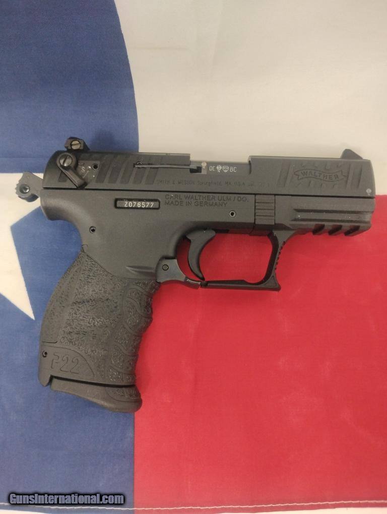 Description: Guns Listing ID: 572964 The Firearm You’ve Been Looking For! Each firearm is carefully inspected and accurately described, with clear, detailed images to provide full transparency. What you see is exactly what you’ll get – guaranteed! Buy with absolute confidence! Manufacturer: WALTHER ARMS Model: P22 Caliber: 22 LR Action: SEMI AUTOMATIC Barrel Length: 3.5\" Finish / Color: BLUE Case / Box: INCLUDED Magazine(s): 1 Capacity: 10 ROUNDS Extras: CASE, 1 EXTRA BACK STRAP Inventory #: TOQ Please note that the overall condition of an item may be subjective. We encourage you to review all images carefully before finalizing your purchase. Detailed photos are provided to give a clear representation of the firearm’s condition, including any wear or markings. While we strive to accurately represent each item, buyer expectations may vary, so please use the images as your primary reference. SOLD Manufacturer: WALTHER Model: P22 Caliber Info: .22 LR Condition: Used - Non-Certified Barrels: 3.5" BARREL Action: SEMI AUTOMATIC Finish: black |