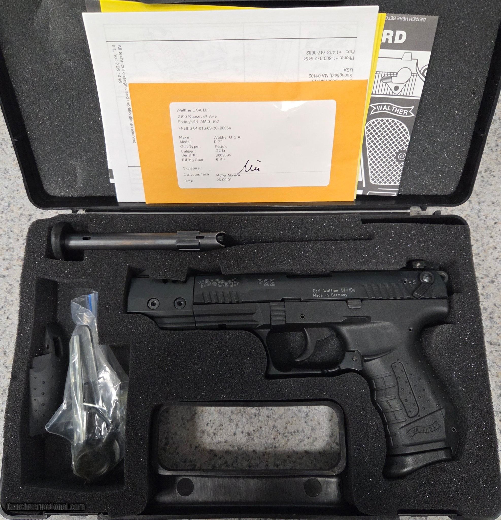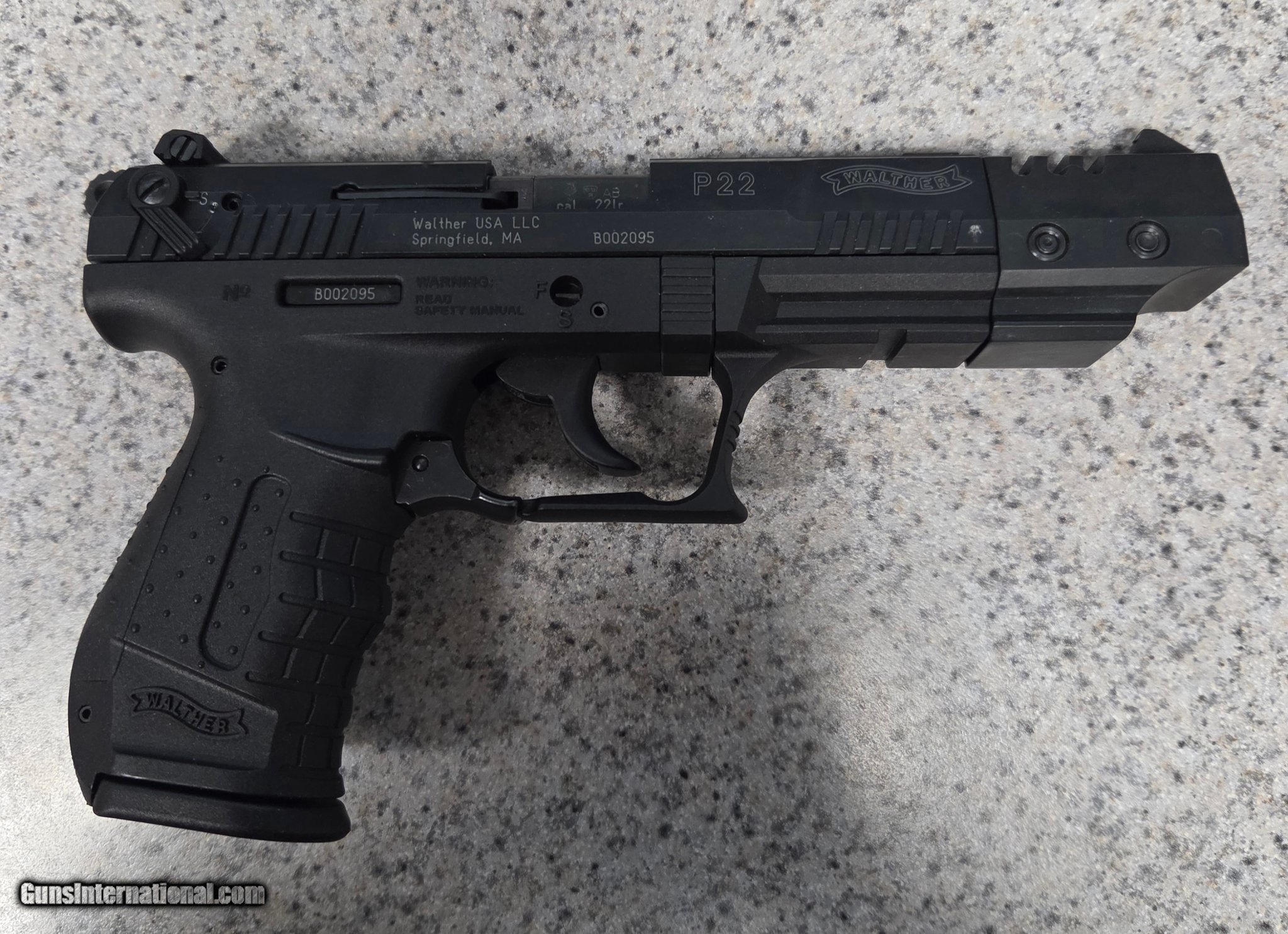 Description: Guns Listing ID: 590647 Used Walther P22 Target. This pistol has a 5\" barrel and comes with the original box and 2 magazines. Manufacturer: WALTHER Model: P22 Caliber Info: .22 LR Condition: Used - Non-Certified Barrels: 5" BARREL Action: SEMI AUTOMATIC Finish: BLACK Weight: 1.1 lbs. Price: $300.99 Contact Seller |