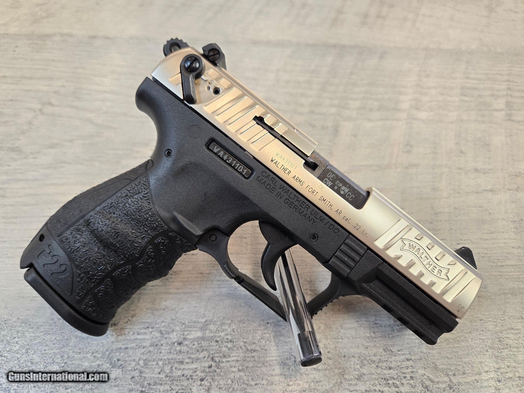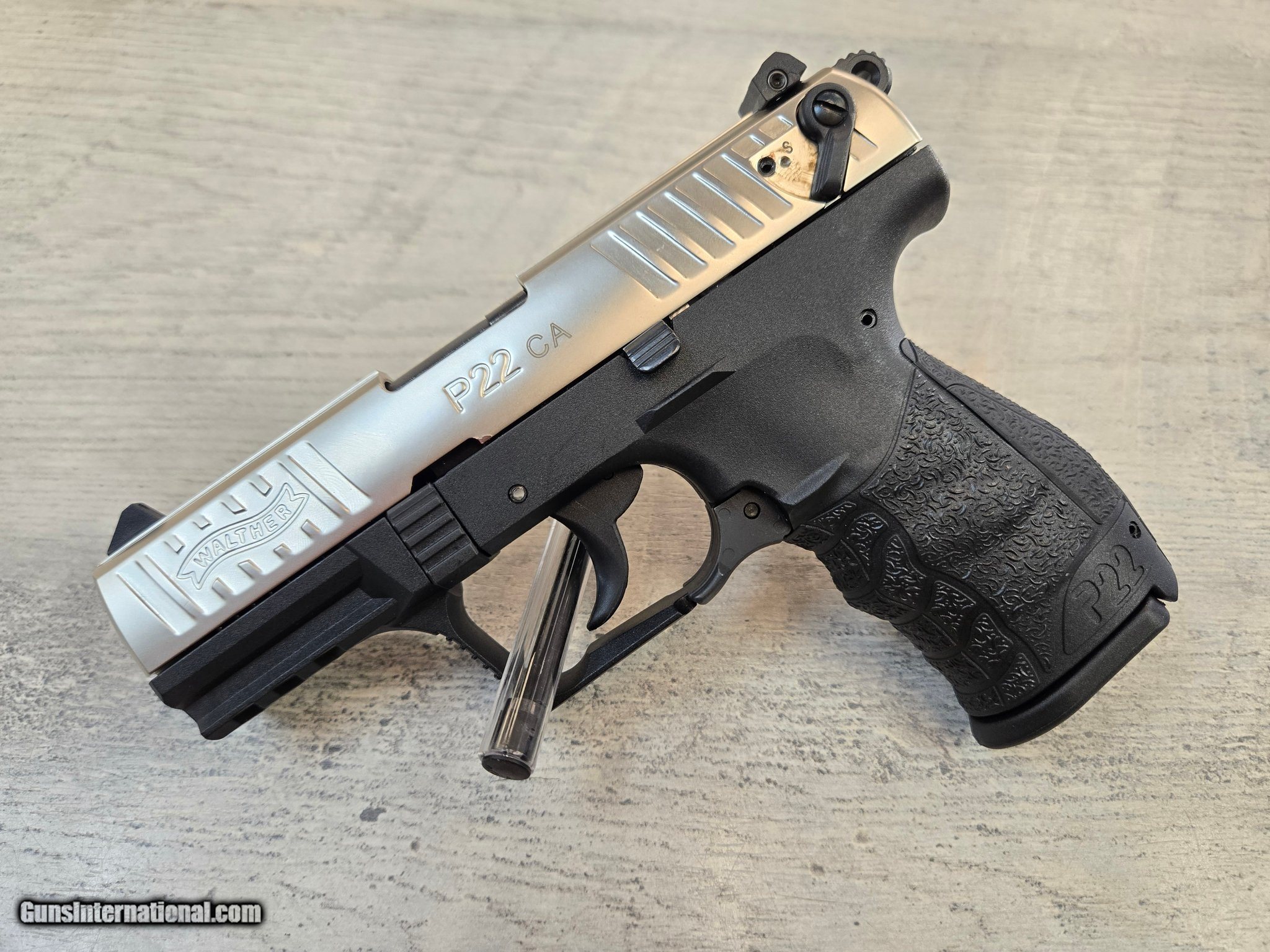 Description: Guns Listing ID: 465257 Normal wear and tear, comes with one magazine, no box. SOLD Manufacturer: WALTHER Model: P22 CA Condition: Used - Non-Certified Barrels: 3.25 Gauge Info: .22 LR Finish: black & silver |