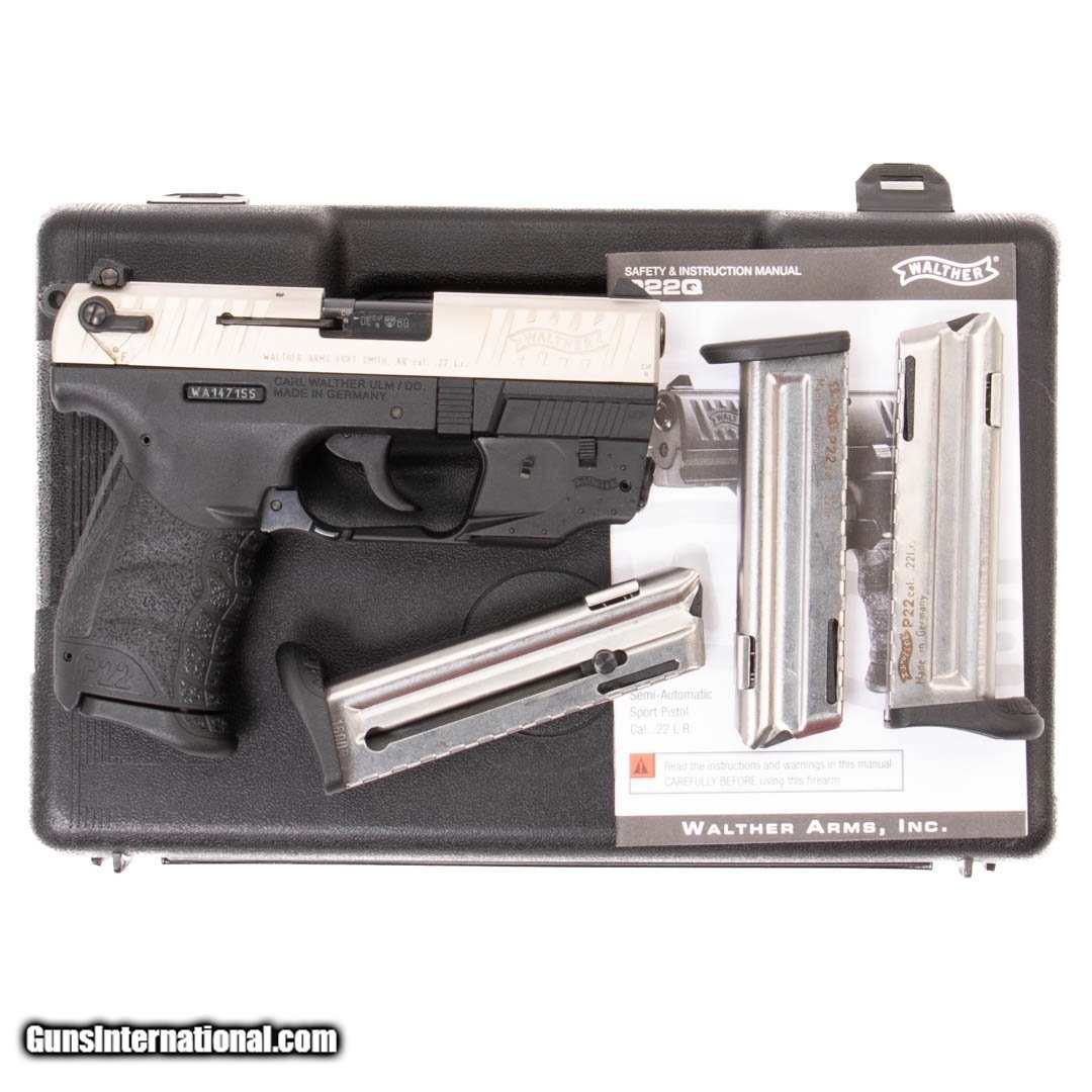 Description: Guns Listing ID: 496936 This Walther comes with four 10-round magazines, the original case, owner‚‚s manual, an extra backstrap, an ambidextrous safety and it‚‚s equipped with a Walther laser. Get the best bang for your buck when you get a Certified Used Firearm . When you see the Certified Used stamp on any of our firearms, you can be confident that you’re getting exactly what you want – a gun only in very good to excellent condition and held to the highest quality standard. All Certified Used Guns come with a ‘no questions asked’ return policy . PLUS, ALL CERTIFIED USED GUNS SHIP FRE SOLD Manufacturer: WALTHER Model: P22 CA Caliber Info: .22 LR Condition: Used - Certified Barrels: 3.40 BARREL Action: SEMI AUTOMATIC Finish: nickel Weight: 1.2 |