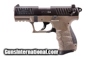 Description: Guns Listing ID: 61577 The .22 rimfire handgun will never look the same. The P22 changed everything. Walther adapted the tactical styling and Performance Design concepts from our centerfire handguns and applied them to the .22 L.R. This created a new movement in the design of contemporary rimfire handguns. FEATURES: Ambidextrous Magazine Release; Front and Rear Slide Serrations; Picatinny Rail ACCESSORIES: 1 Mag FINISH: FLAT DARK EARTH SOLD Manufacturer: WALTHER Model: P22-CA Caliber Info: .22 LR Condition: new Barrels: 3.4" BARREL |