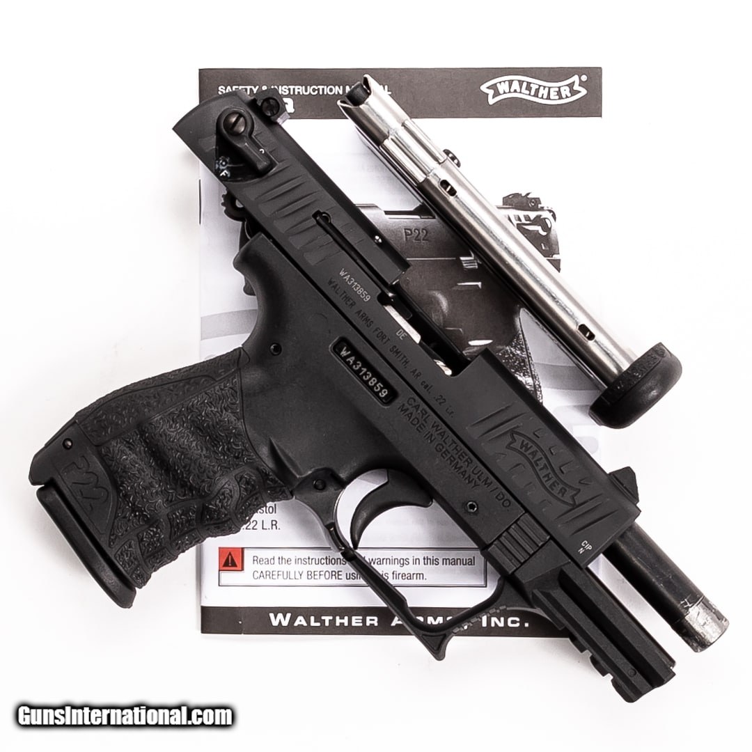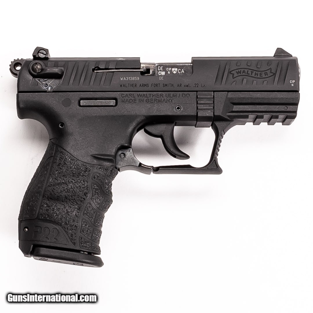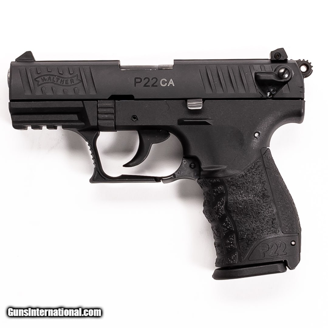 Description: Guns Listing ID: 277438 This Walther P22 CA is a state-compliant handgun that is great for target practice, plinking, and training. They are a favorite among 22 LR shooters and have a reputation for reliability, accuracy, and Walther‚‚s signature ergonomics. If you‚‚re in the market for a 22 LR handgun, this model is a popular choice. This pistol is in very good condition, with scratches at the end of the barrel. Purchase includes the original case and manual and two 10-round magazine SOLD Manufacturer: WALTHER Model: P22 CA Caliber Info: .22 LR Condition: Used - Certified Barrels: 3.4 barrel Finish: BLACK |