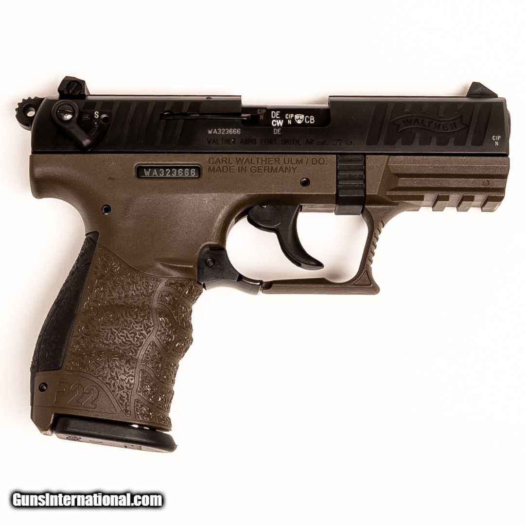 Description: Guns Listing ID: 554010 This Walther P22 CA is a state-compliant handgun that‚‚s great for target practice, plinking, and training. They are a favorite among 22 LR shooters and have a reputation for reliability, accuracy, and Walther‚‚s signature ergonomics. If you‚‚re in the market for a 22 pistol, this P22 is a popular choice. Purchase includes the original case, manual, two 10-round magazines, and two sizes of backstra SOLD Manufacturer: WALTHER Model: P22 CA Caliber Info: .22 LR Condition: Used - Certified Barrels: 3.4 barrel Finish: OD GREEN/BLACK |