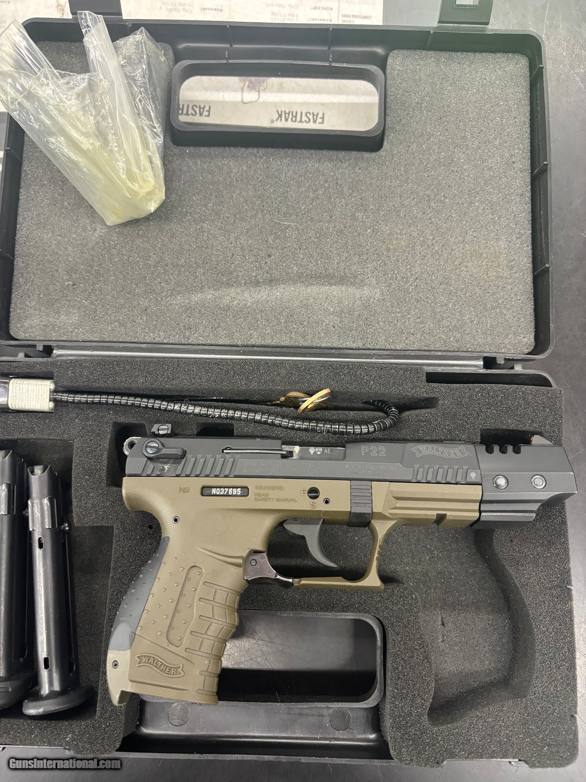 Description: Guns Listing ID: 1231971 WALTHER P22 EXCELLENT CONDITION NO SCRATCHES EXCELLENT CONDITION INCLUDES BOX W/ 2 MAGS SOLD Manufacturer: WALTHER Model: P22 MILITARY Caliber Info: .22 LR Condition: Used - Non-Certified Barrels: 5 BARREL Finish: GREEN/BLACK |
