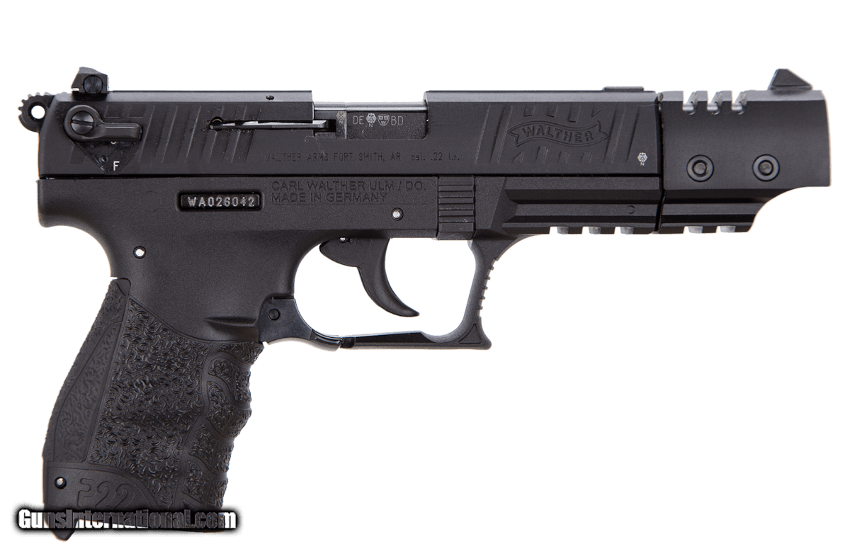 Description: Guns Listing ID: 484053 Walther‚‚s P22 is at home on the shooting range, or around the camp. It features a contemporary styling and performance design concepts from Walther centerfire handguns, captured recoil spring, and decocker built into the safety. The slide features front and rear slide serrations, loaded chamber indicator, and external slide stop locks. This CA compliant model has a 5\" barrel, black finish, interchangeable backstraps, and comes with a 10-round magazine SOLD Manufacturer: WALTHER Model: P22 TARGET BLACK CA Caliber Info: .22 LR Condition: new Barrels: 5 BARREL |
