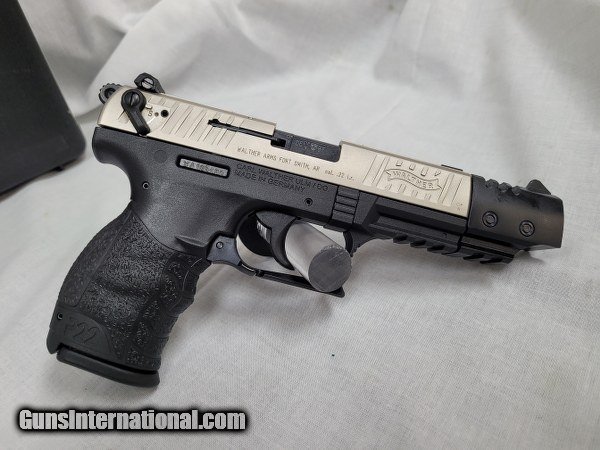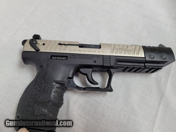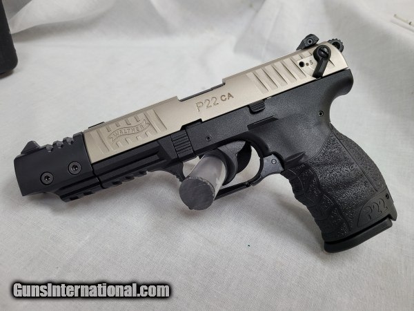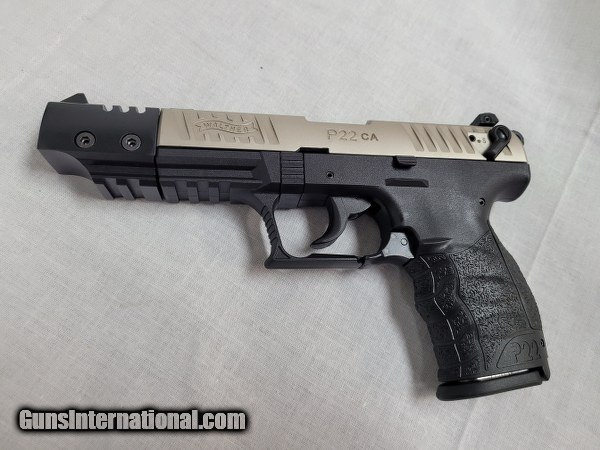 Description: Guns Listing ID: 688532 Comes with the original hard case, extra magazine, adjustment tools, and backstrap. Adjustable rear sight, compensator, ambidextrous safety and mag release. Overall great condition. SOLD Manufacturer: WALTHER Model: P22 TARGET NICKEL CA Caliber Info: .22 LR Condition: Used - Non-Certified Barrels: 5 BARREL |