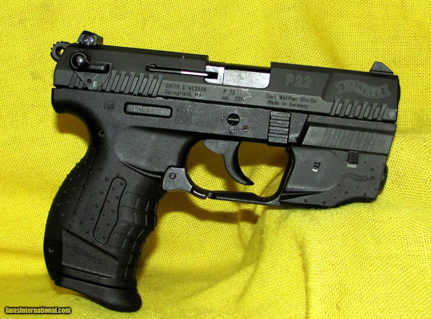 Description: WALTHER model P22 in .22 L.R. CAL., with 3 1/2" barrel. Color BLACK. WALTHER (S&W) MODEL P22 WITH FACTORY LAZER, MIRROR BORE, GRIPS EXCELLENT, 98% FACTORY FINISH. OUR NEW STOCK # D31377 Condition 98%. Serial number L356894. SOLD |