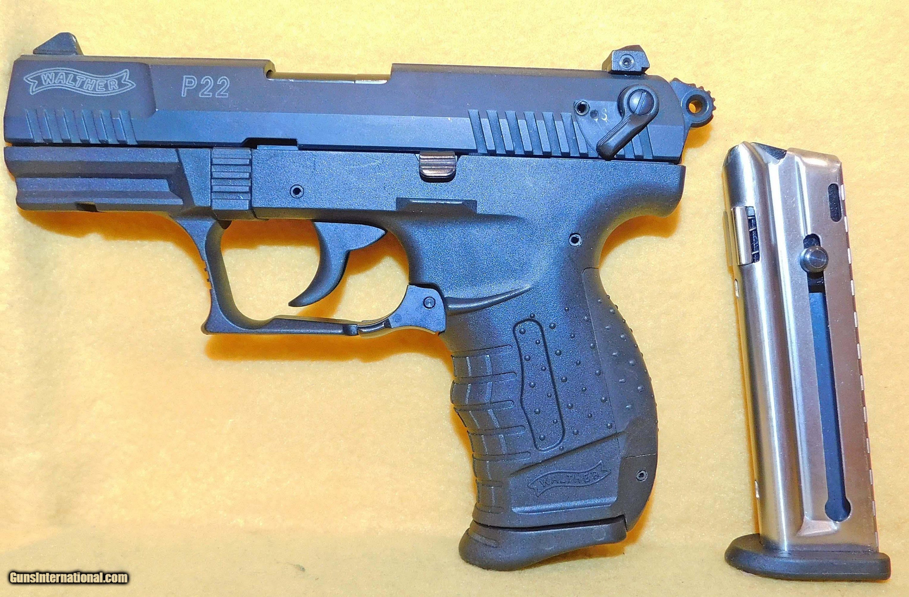 Description: WALTHER P22 IN .22 L.R. CA;L., WITH 3 .25" BARREL. COLOR BLACK. CONDITION 97%+. SERIAL NUMBER L144844. WALTHER MODEL P22 IN .22 L.R. CALIBER, MIRROR BORE, GRIPS EXCELLENT, COMES WITH TWO FACTORY MAGAZINES, 97%+ OVERALL CONDITION, OUR STOCK # D3764 SOLD |