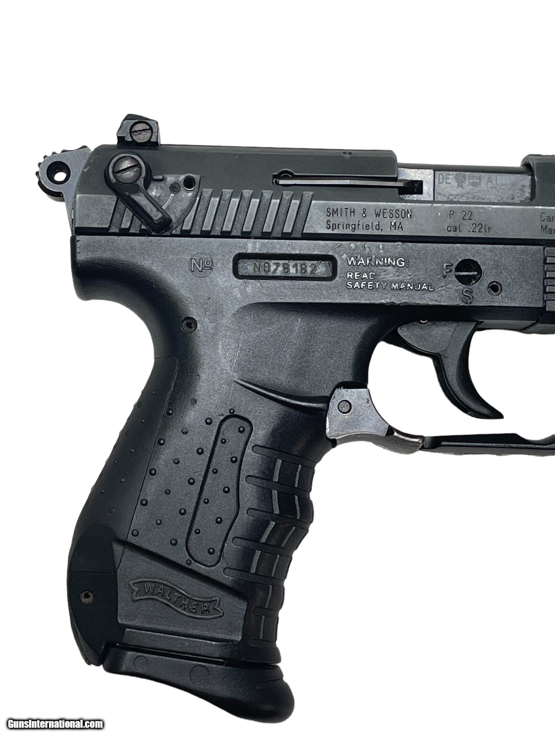 Description: Guns Listing ID: 596803 The Walther P22 is compact in size, while still maintaining all of the features of a full size pistol. Constructed using a modular manufacturing concept, the P22 offers several different equipment configurations. Features include interchangeable backstrap that creates an ideal fit to the shooters hand, compact and lightweight design, traditional double action design, ambidextrous controls for right or left handed shooters, integrated trigger lock and loaded chamber indicator, magazine disconnect, hammer safety and firing pin safety for safe and reliable operation, fixed barrel for incredible accuracy and windage adjustable rear sight and elevation adjustment with interchangeable front sights for variations in shooter operations. item-I01018075 CC- NTE SOLD Manufacturer: WALTHER Model: P22 Caliber Info: 22 LR Condition: Used - Non-Certified Barrels: 3.25 BARREL Finish: MATTE BLACK |