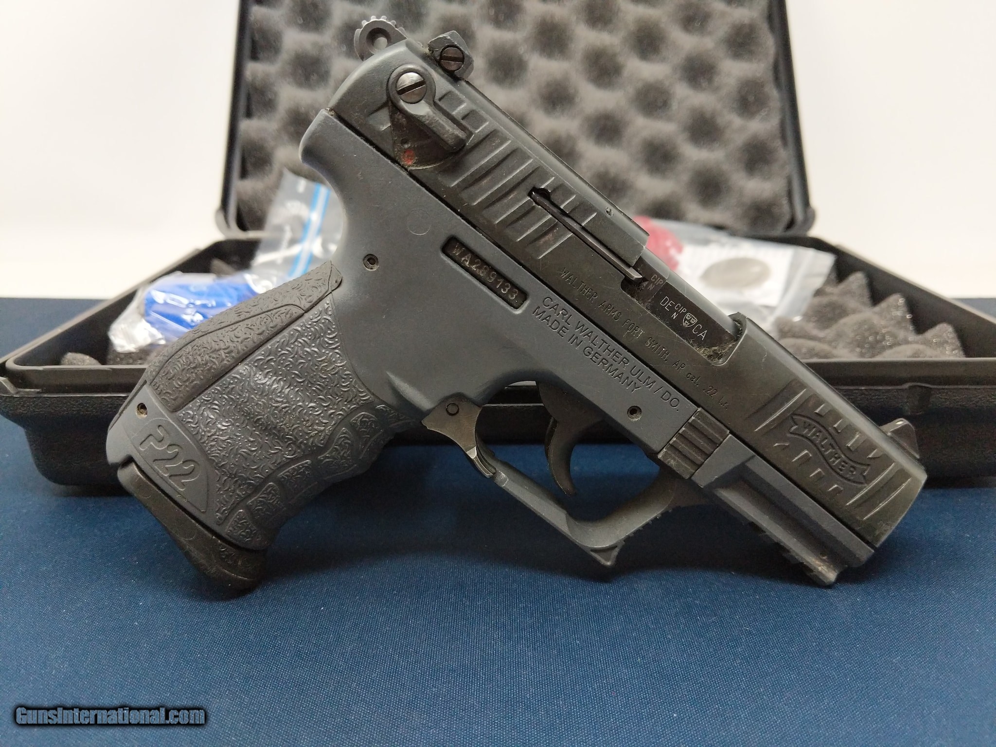 Description: Guns Listing ID: 752254 Great condition Walther P22! Perfect affordable concealed carry pistol in original hard case with one 10rd magazine. 0223OVZ SOLD Manufacturer: WALTHER Model: P22 Caliber Info: .22 LR Condition: Used - Non-Certified Barrels: 3 BARREL Finish: GRAY |