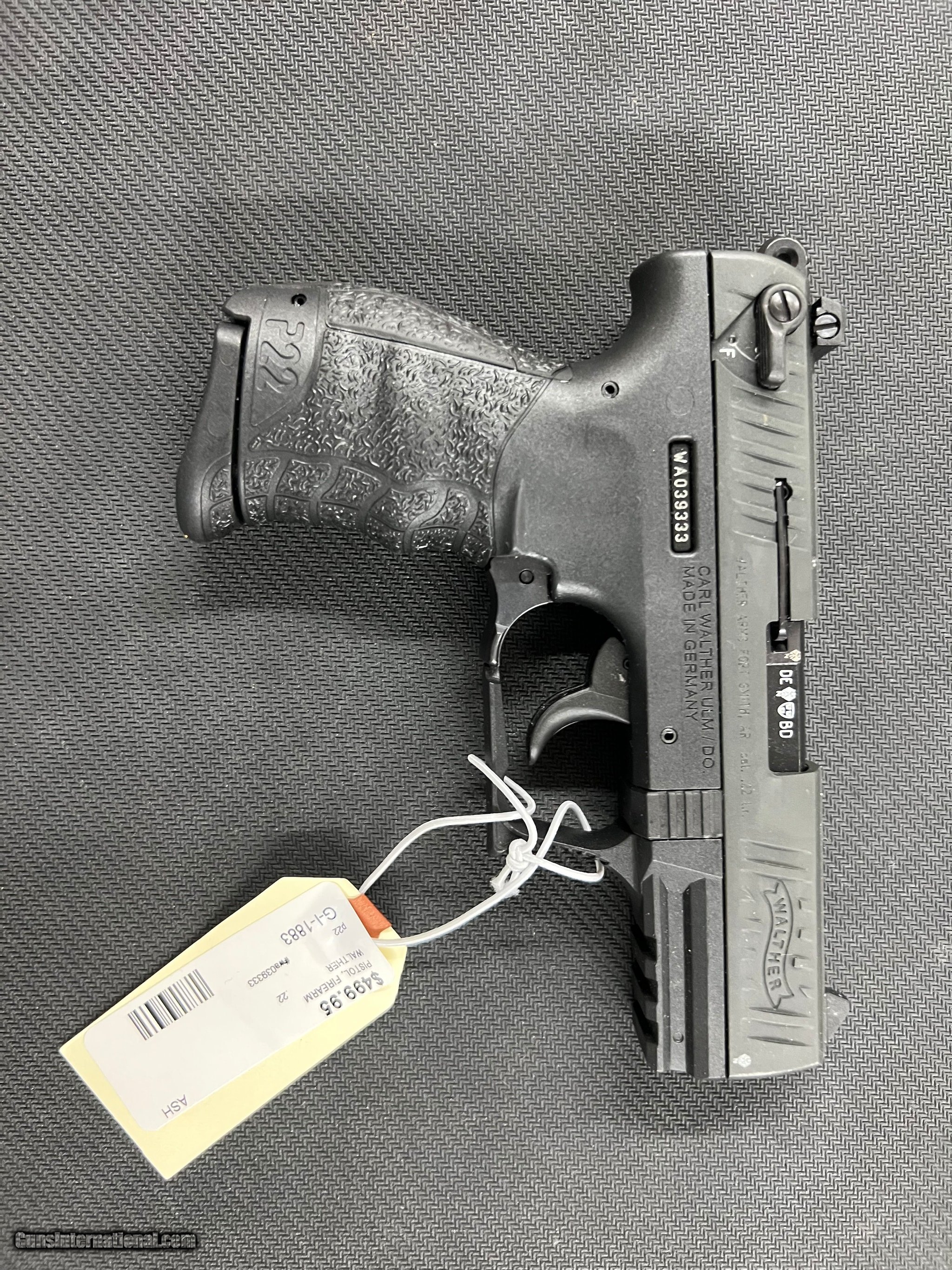 Description: Guns Listing ID: 679574 THIS GUN IS IN EXCELLENT CONDITION . SOLD Manufacturer: WALTHER Model: P22 Caliber Info: .22 CAL Condition: Used - Non-Certified Barrels: 5 BARREL Finish: BLACK |
