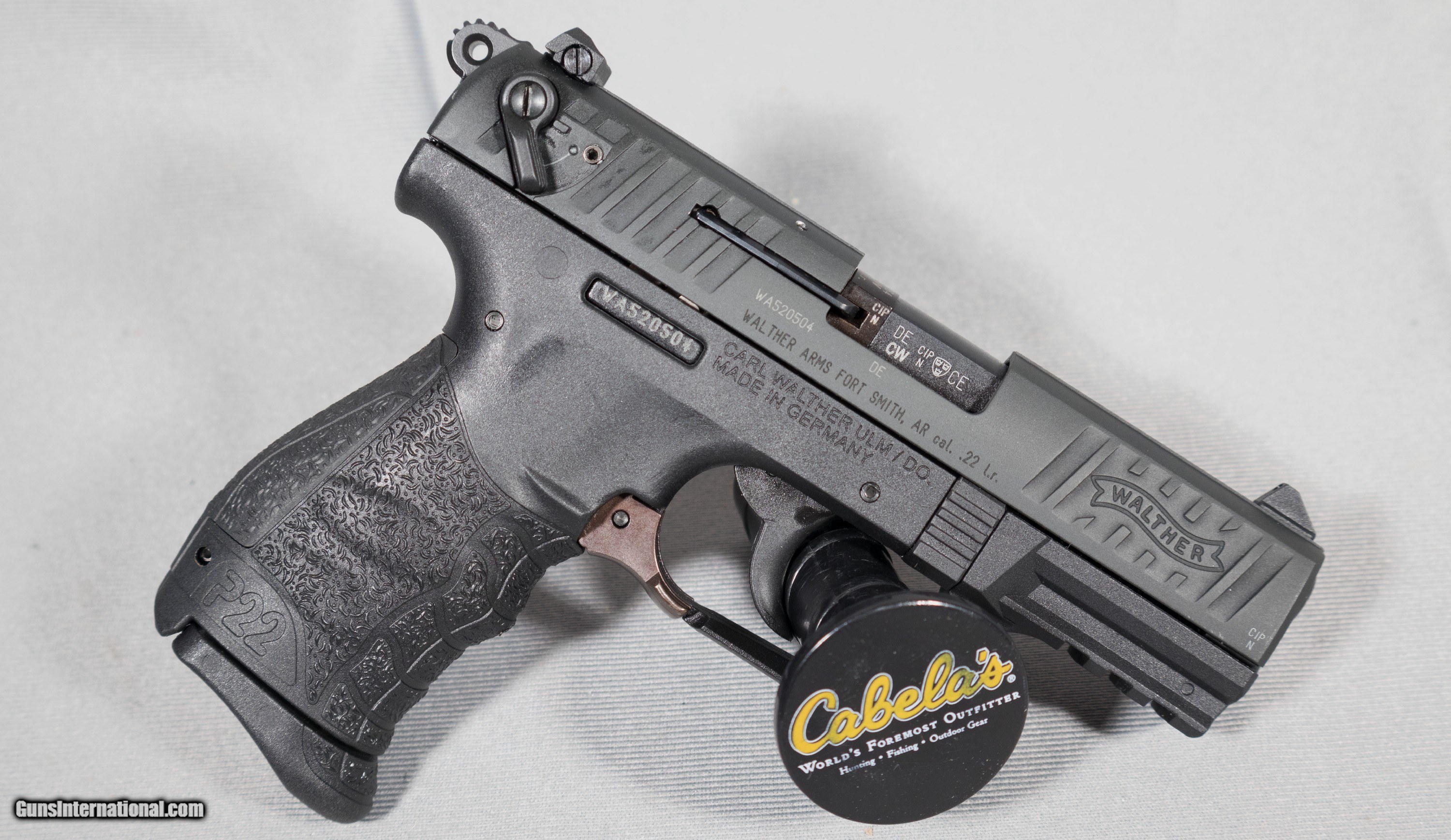 Description: A popular pistol for rimfire plinking and practicing pistol fundamentals at the range at a very affordable price, the Walther P22Q is a double/single-action semi-auto pistol chambered in the ever-popular .22 Long Rifle. The pistol is made of a polymer lower frame with a lightweight alloy slide and made in Germany by the Umarex/Walther company. The pistol is ambidextrous-friendly, with an ambidextrous paddle magazine release and slide-mounted safety selectors on either side. The gun bears many resemblances to the 9mm Walther PPS M2 and P99 pistols, making it a great choice for owners of those pistols to practice with a cheaper caliber. Another great feature of the P22Q is its ability to accept a threaded extension for operation with suppressors or compensators—features which continue to be sought after by many firearms enthusiasts. This pistol is in a factory-refurbished condition and has had its barrel replaced for complaints of accuracy from a previous owner. This new factory barrel has not been fired except for at the factory. Included with the pistol are the factory hard case, two OEM 10-round magazines, additional front sight posts to adjust for elevation, a barrel wrench for installing the threaded extension (not included), cable lock, safety booklet, user manual, and factory repair report. .22 Long Rifle Chambers: .22 Long Rifle Metal Condition: Excellent Bore Condition: Like new Barrels: 3 1/2 Triggers: "Double/single action, serrated trigger Fore End: Accessory rail Weight: 1 Lb 1 Oz Sights: "Adjustable rear sight, fixed interchangeable front sight; white 3-dot sights Item Location: Kearney, NE Price: $249.99 Contact Seller |