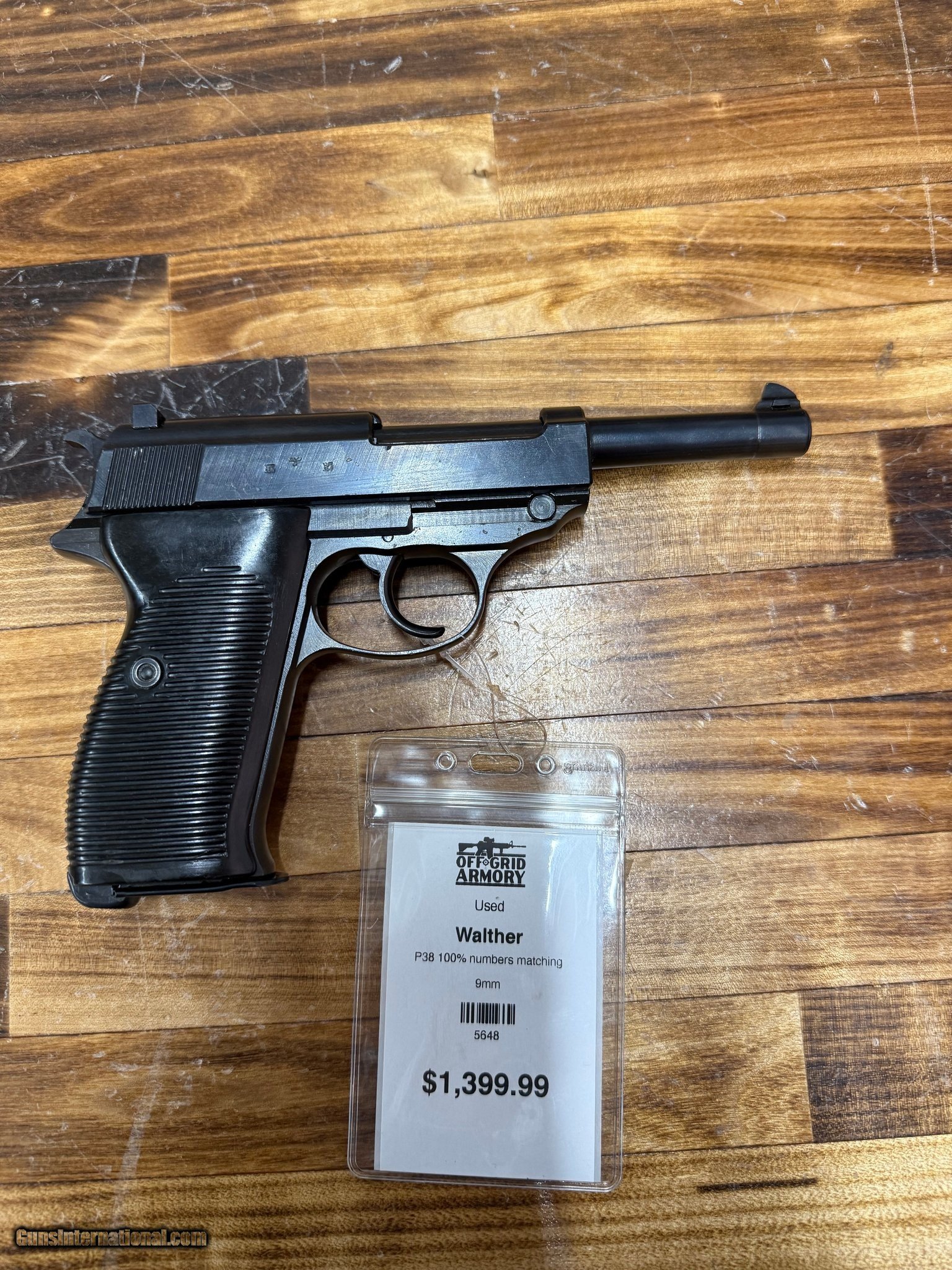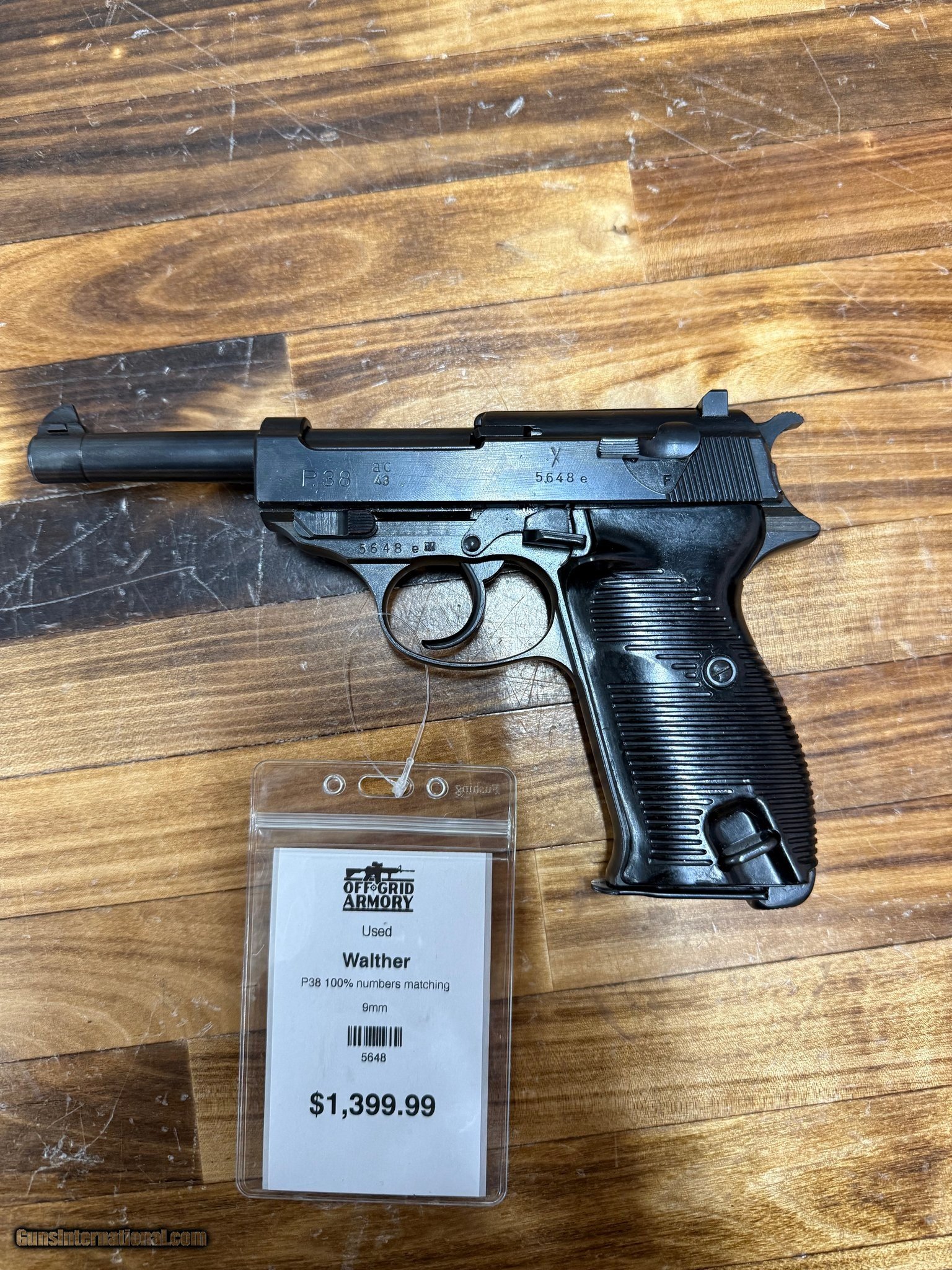 Description: Guns Listing ID: 551369 WALTHER P38 9MM PISTOL A true icon of World War II-era sidearms, the Walther P38 stands as one of the most historically significant and mechanically innovative pistols of the 20th century. This 9mm semi-automatic handgun was the standard issue for German military forces during WWII and remains highly collectible among military surplus enthusiasts and firearms historians alike. SOLD Manufacturer: WALTHER Model: P38 100% numbers matching Caliber Info: 9MM LUGER (9x19 PARA) Condition: Used - Non-Certified Barrels: 5" BARREL Action: SEMI AUTOMATIC Finish: black |