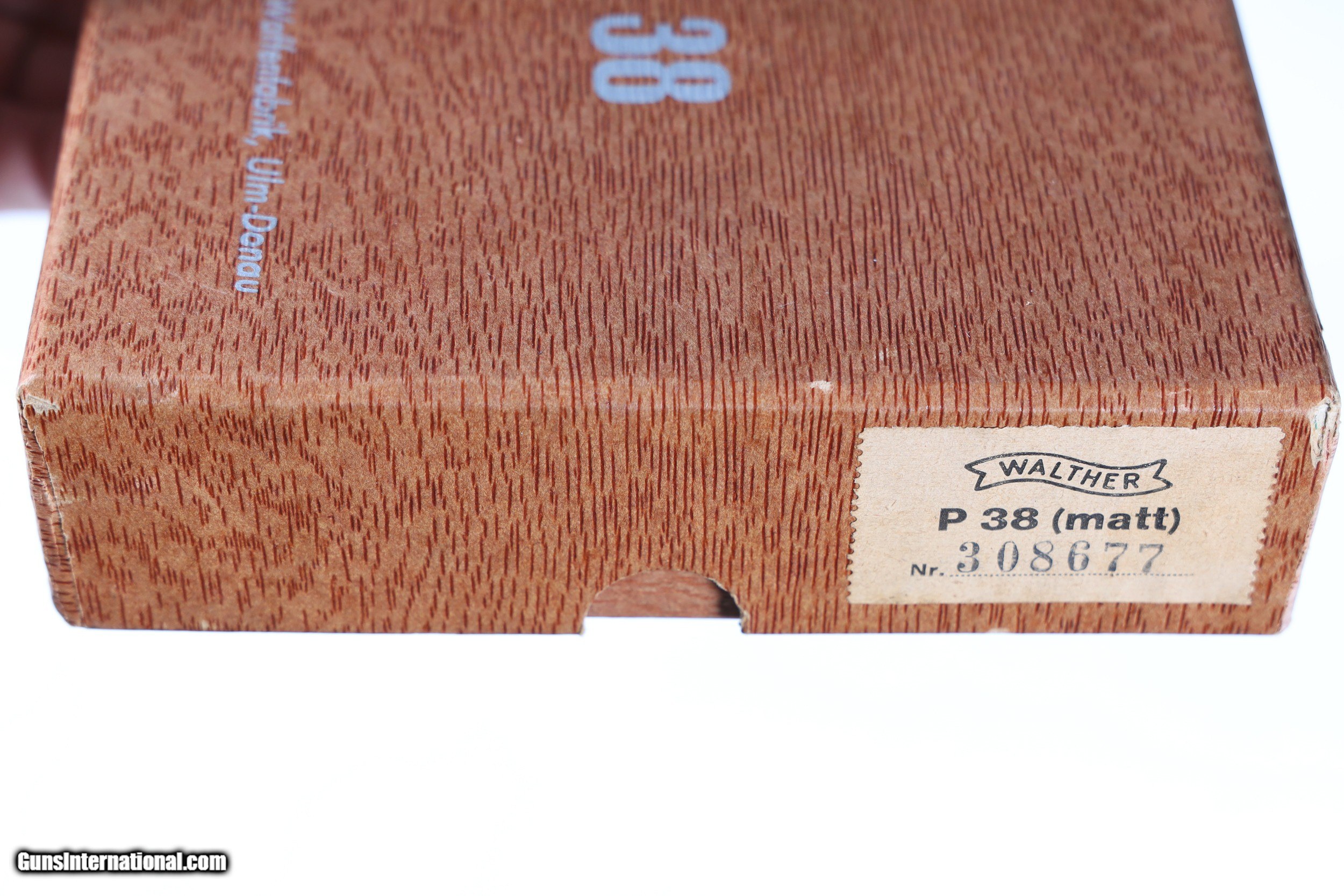 Description: Excellent plus overall condition in factory box numbered to gun with factory paperwork and target. Manufactured in 1966. Free Shipping, No Credit Card Fees! SOLD Manufacturer: Walther Model: P38 Serial Number: 308677 Barrel Length: 5 Caliber Info: 9mm |