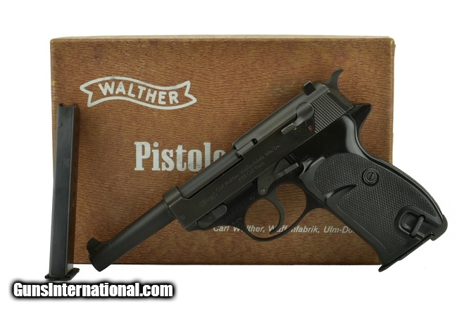 Description: Walther P38 9mm caliber pistol. Post war commercial model, proof dated 1968. Excellent condition with box, papers and extra magazines.