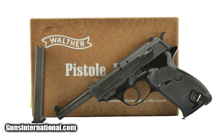 Description: Walther P38 9mm caliber pistol. Post-War commercial model made in 1968. Shows some wear, very good condition with box, papers and extra magazine.