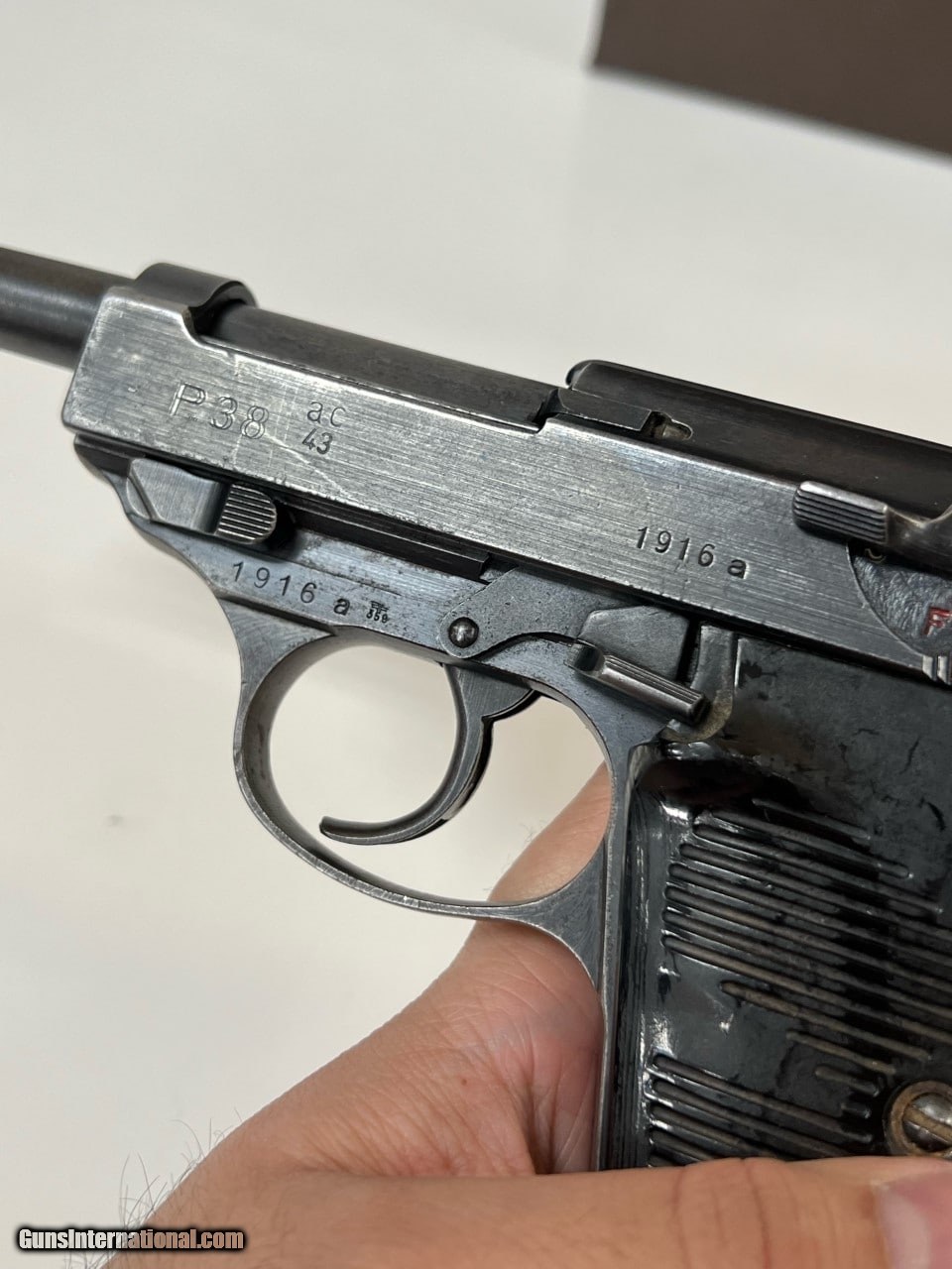 Description: Guns Listing ID: 706754 Walther P38 with 1 mag Slide and Receiver have matching serial numbers and the barrel has a different number no import marks magazine is after market I believe does show signs of use see all pictures fore more details and to determine condition SOLD Manufacturer: WALTHER Model: P38 AC 43 No Import Marks Caliber Info: 9MM Condition: Used - Non-Certified Barrels: 4.75 BARREL Finish: BLUE |