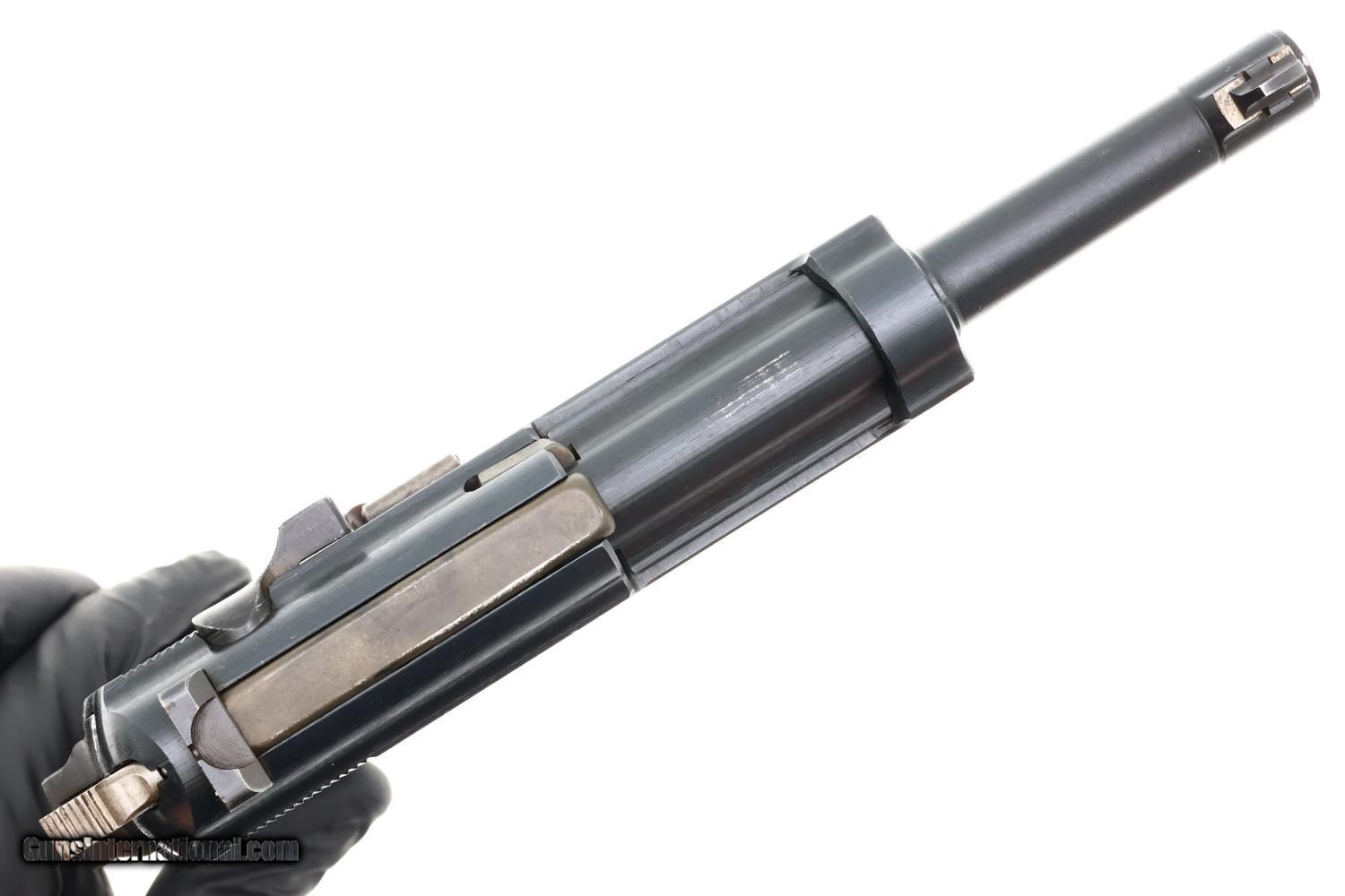 Collector quality 98+% original salt blue with comparable condition phosphate on the loaded indicator cover, extractor, slide release and trigger. Comparable condition grips and magazines. Bright bore with sharp rifling. Correct manual mechanics.