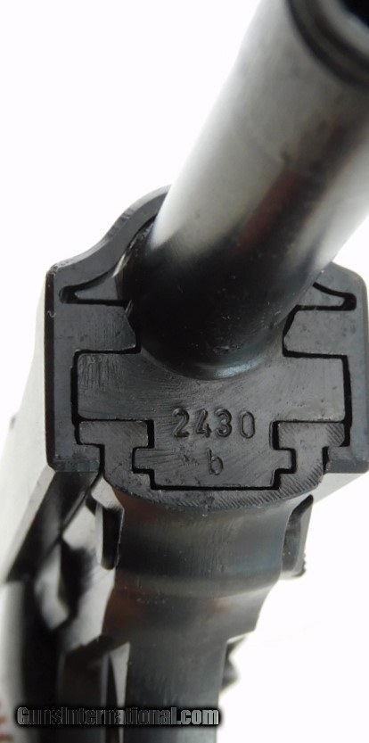 Description: Walther P38 byf 43 9MM, 5" bbl, good bore, notch rear sight, blade front sight, blued finish, one 8 round magazine, German proof marks on slide and trigger guard, matching numbers, lanyard loop and nice black grips. Add 3% for Credit Card Shipping $25.00 SOLD Curio/Relic: Yes |