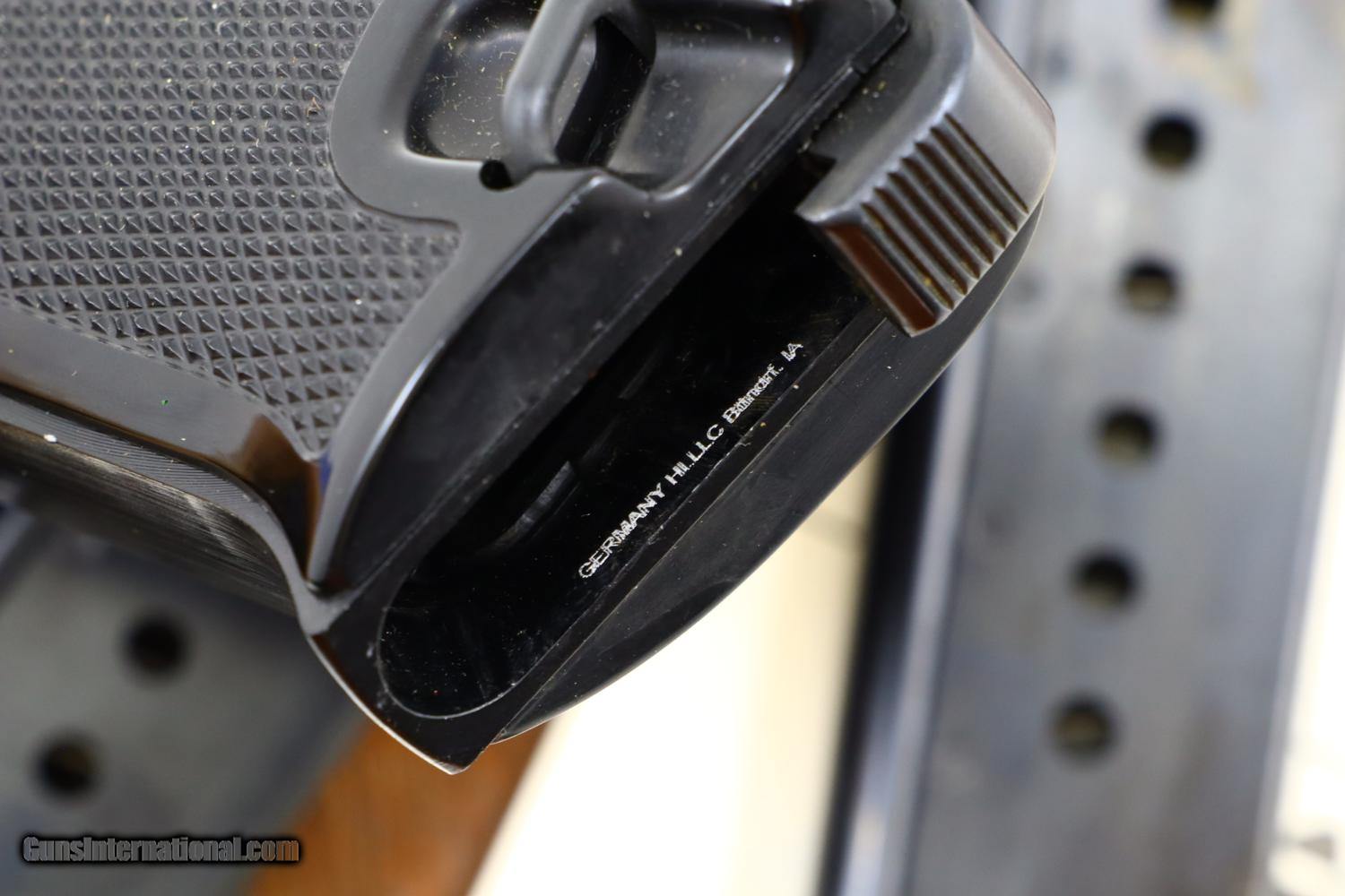 Description: This P38-K is a super early gun, the 64th made, this example having been proofed in 1974. Shipped in a standard P38 wood grain box with a factory matching label, the “K” having been hand written. This is the same kind of adjustment found on the test target, again numbered to the pistol, but with a hand written “K” suffix, likely a transitional effort before Walther made up its standard stamps and labeling. The gun itself has standard features with a white insert front sight mounted on forward slide bridge. Horizontally adjustable rear sight. Left side of frame with Walther banner followed by a single line Walther address surmounting the “P38-K” designation. The full serial number is on the right side of the slide. Production year 1974. Proof marked on left side upper trigger guard. Matte finish barrel, slide, and all small parts; black anodized alloy frame. Two piece checkered black plastic grips with left panel recessed for lanyard loop. Two high polish commercial magazines each marked with the Walther banner over P38 9mm. Crisp test target and instruction booklet. Standard P38 shipping box with external scuffs. Synopsis: Super scarce and super early Walther P38-K, near new, with black plastic grips, spare magazine, P38-K instruction booklet, numbered test target, in wood grain box with matching orange/black P38-K end label. Condition: Fantastic, 99+%, near new condition that equally applies to the grips and magazines. Mirror bore. Perfect manual mechanics. A wonderful, early P38 whose condition would be impossible to improve upon, especially nice in having its numbered test target and transitional box. ~~Insured shipping fee of $75; most packages shipped using FedEx 2nd Day.~~ SOLD Manufacturer: Walther Serial Number: 500064 Caliber Info: 9mmP |