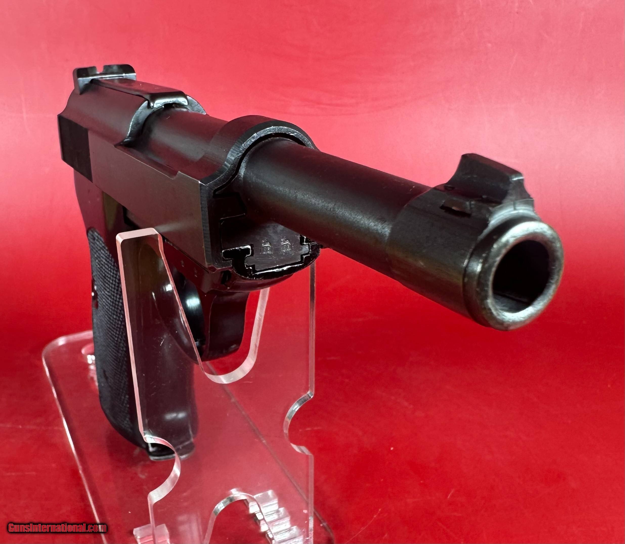 Description: For sale is a very nice Walther Model P38 (P.38 P 38 P-38 P1) that is chambered in 9mm Luger. The barrel measures 5" in length and the bore is in excellent condition. This pistol was made in West Germany for the West German Police. This is a post-war variation of the P-38 with a steel slide and an alloy frame. The sale includes one original magazine. The matte black finish on the slide and barrel is about 98%. The checkered black plastic grips are about 98%. Frame is about 98%. The action works as it should. Please refer to the pictures for details. This gun will be a great addition to any collection, don't miss it! SOLD Handgun Caliber: 9x19mm Parabellum (9mm Luger, 9x19mm NATO) |
