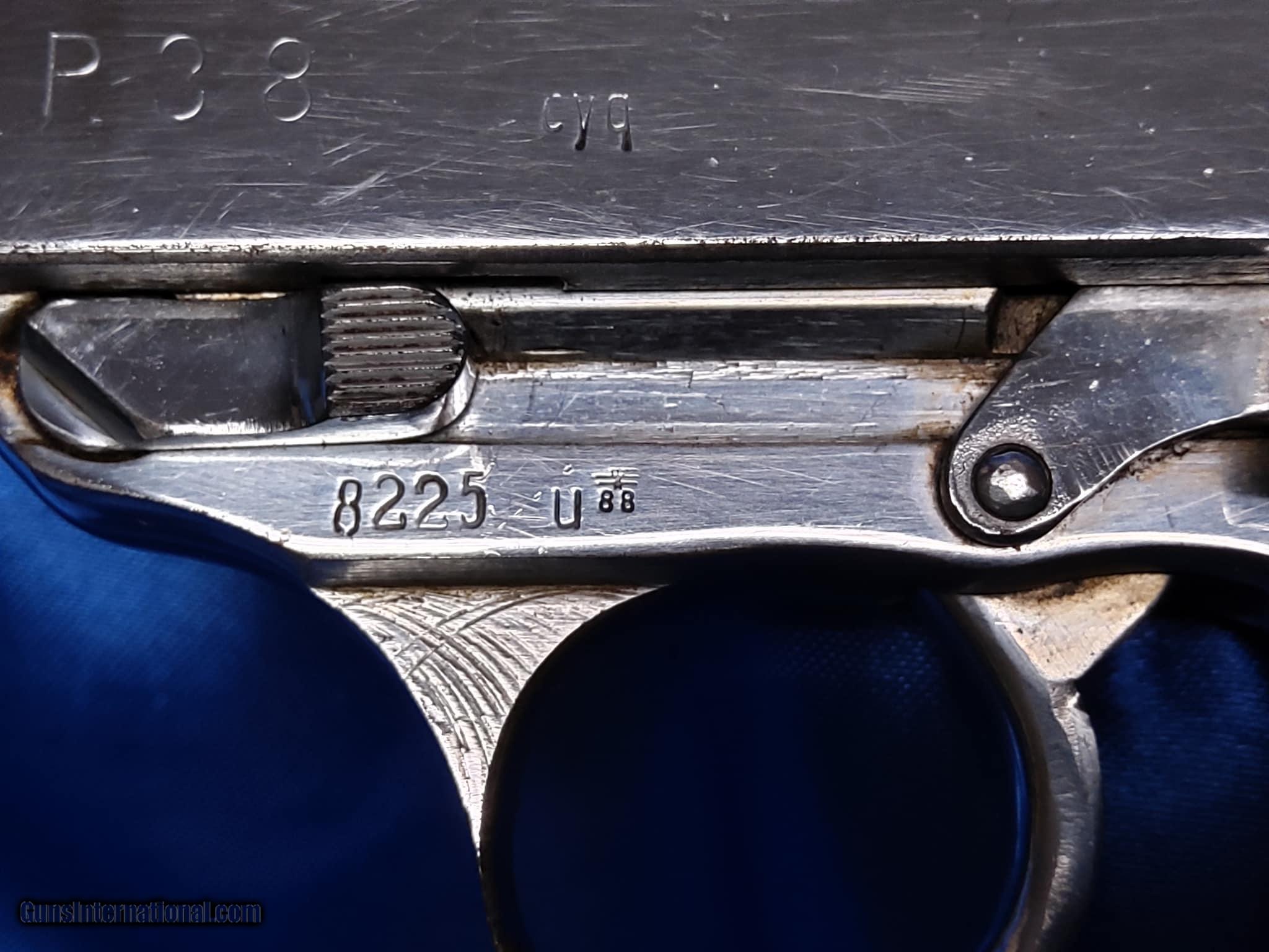 Description: Guns Listing ID: 559795 Excellent condition Walther P38, made between 1939-1945, has many markings on it from WWII, serial number is stamped on all 3 major parts of gun making it original to the manufacture. Included is the original box and holster. It has a 5 inch barrel length, 8 round capacity of 9 mm. SOLD Manufacturer: WALTHER Model: P38 Caliber Info: 9MM LUGER (9X19 PARA) Condition: Used - Non-Certified Barrels: 5 BARREL Finish: STAINLESS AND BLACK |