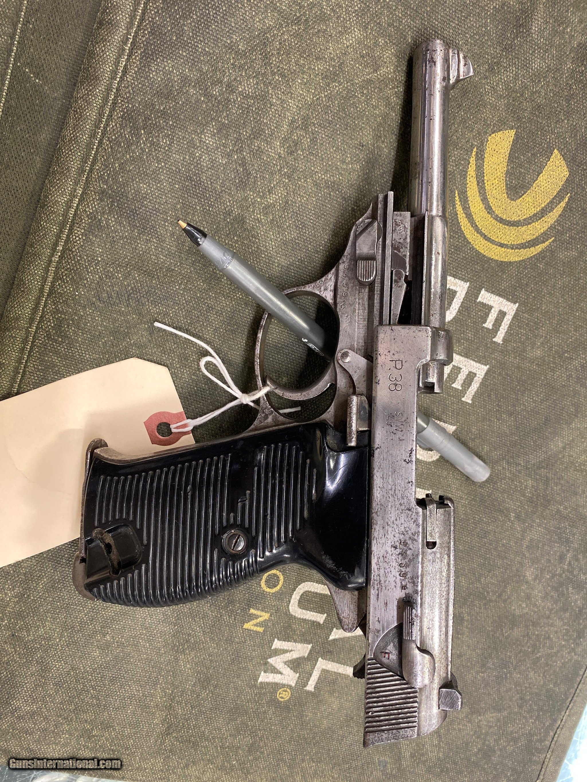 Description: Guns Listing ID: 881150 Walther P38 Fair condition with all matching numbers on parts. SOLD Manufacturer: WALTHER Model: P38 Caliber Info: 9MM LUGER (9X19 PARA) Condition: Used - Non-Certified Barrels: 5 BARREL Finish: NICKEL |