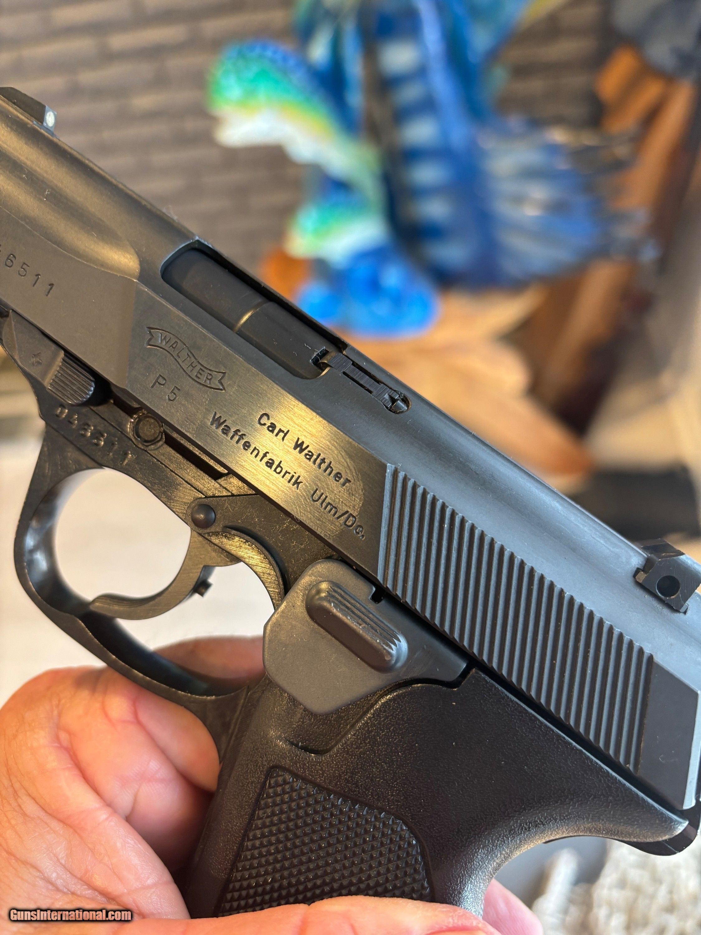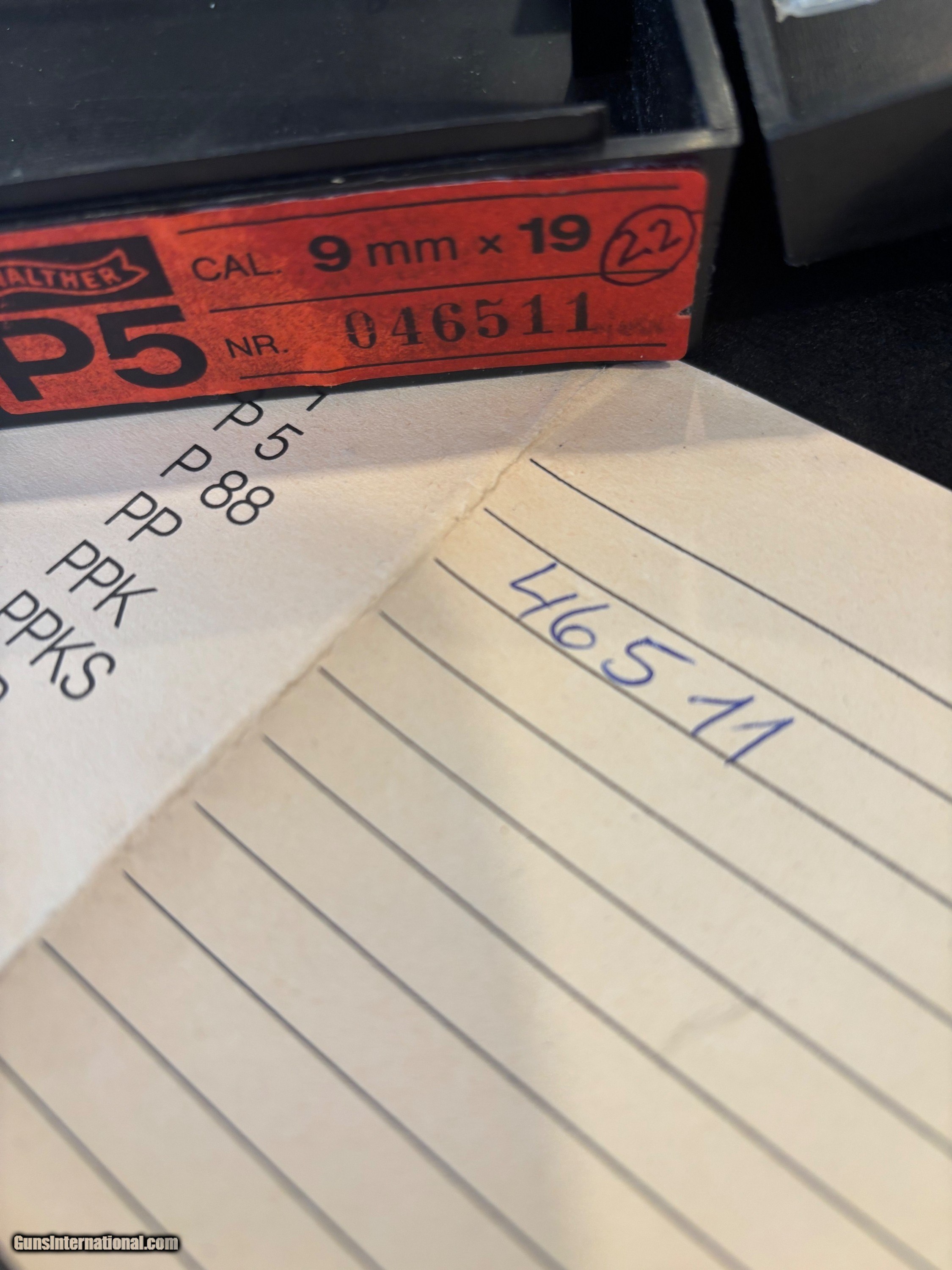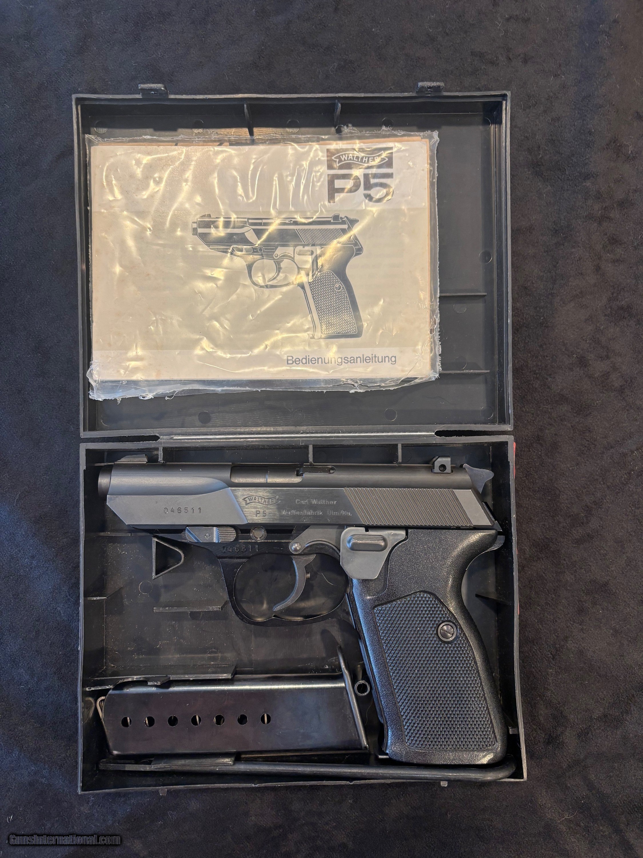 Description: Rare Walther P5 .... like new in the box...with original manual, signed target, and original box. Very hard to find, this pistol is a refinement of the military German P38, the later P1, and now the updated sleek P5.... limited import of these in the 1990s briefly and was discontinued. Very hard to find in this like new condition with 2 mags and cleaning rod.... I am a long term collector who is now an FFL. All shipping must go through your FFL... no delivery outside the continental US..... please insure that this gun is legal in your area... Handgun Caliber: 9x19mm Parabellum (9mm Luger, 9x19mm NATO) Manufacturer: Walther Model: P5 Serial Number: 046511 Barrel Length: 3.1 Bore Info: 9mm Condition: Excellent Metal Condition: Excellent Finish: Black Sights: Adjustable Price: $1,850.00 Shipping: $45.00 Buy Now Pay with