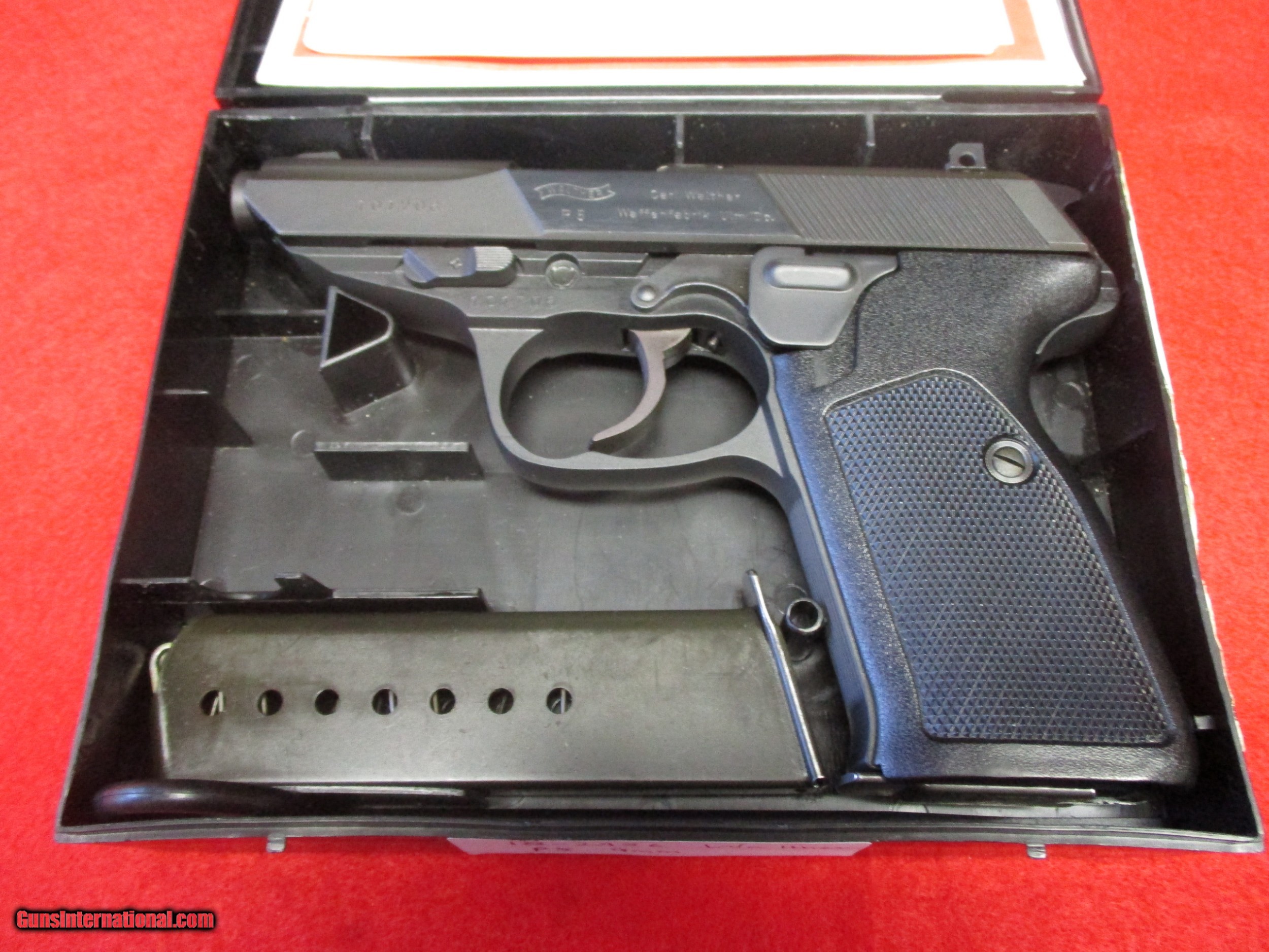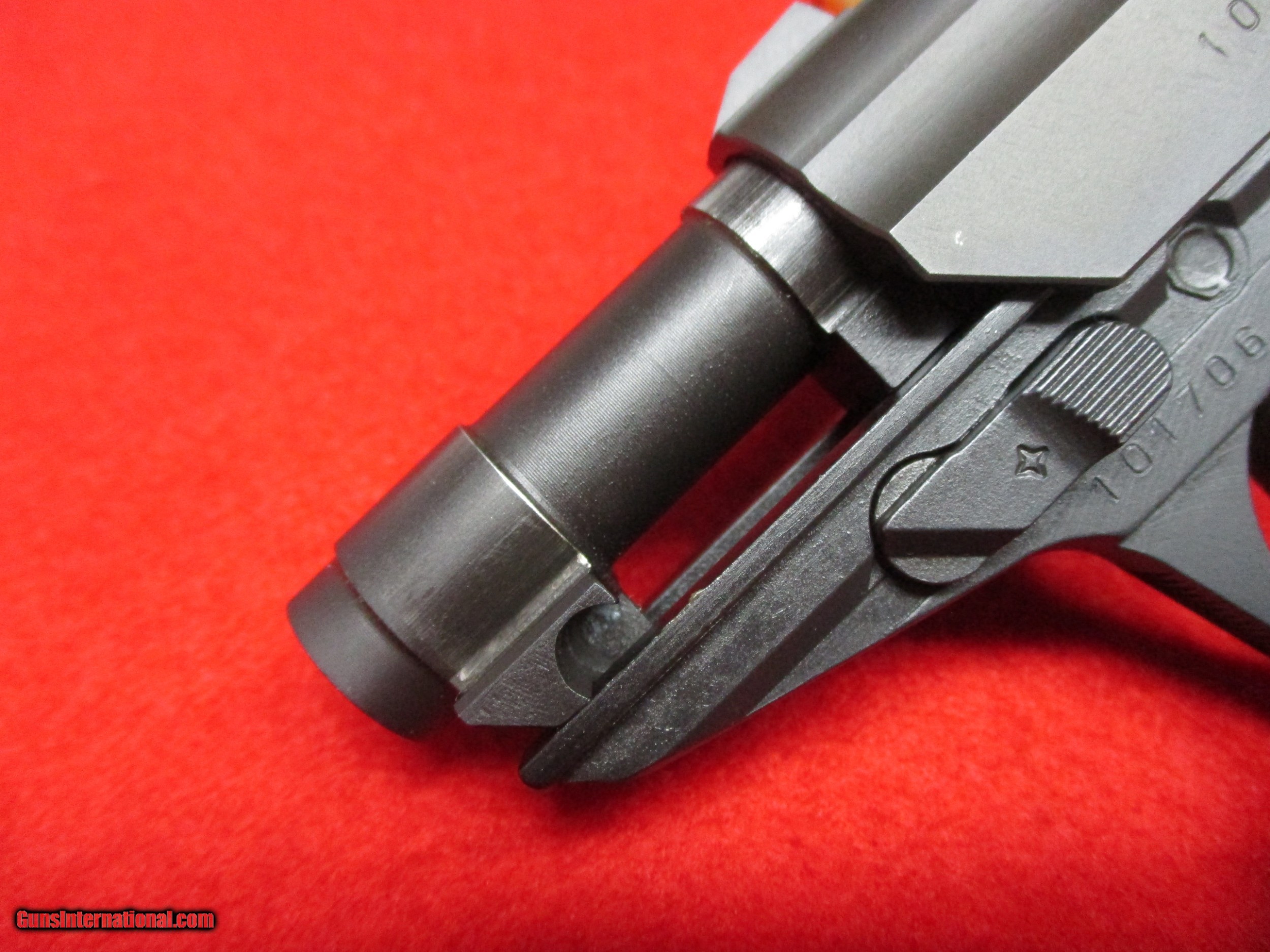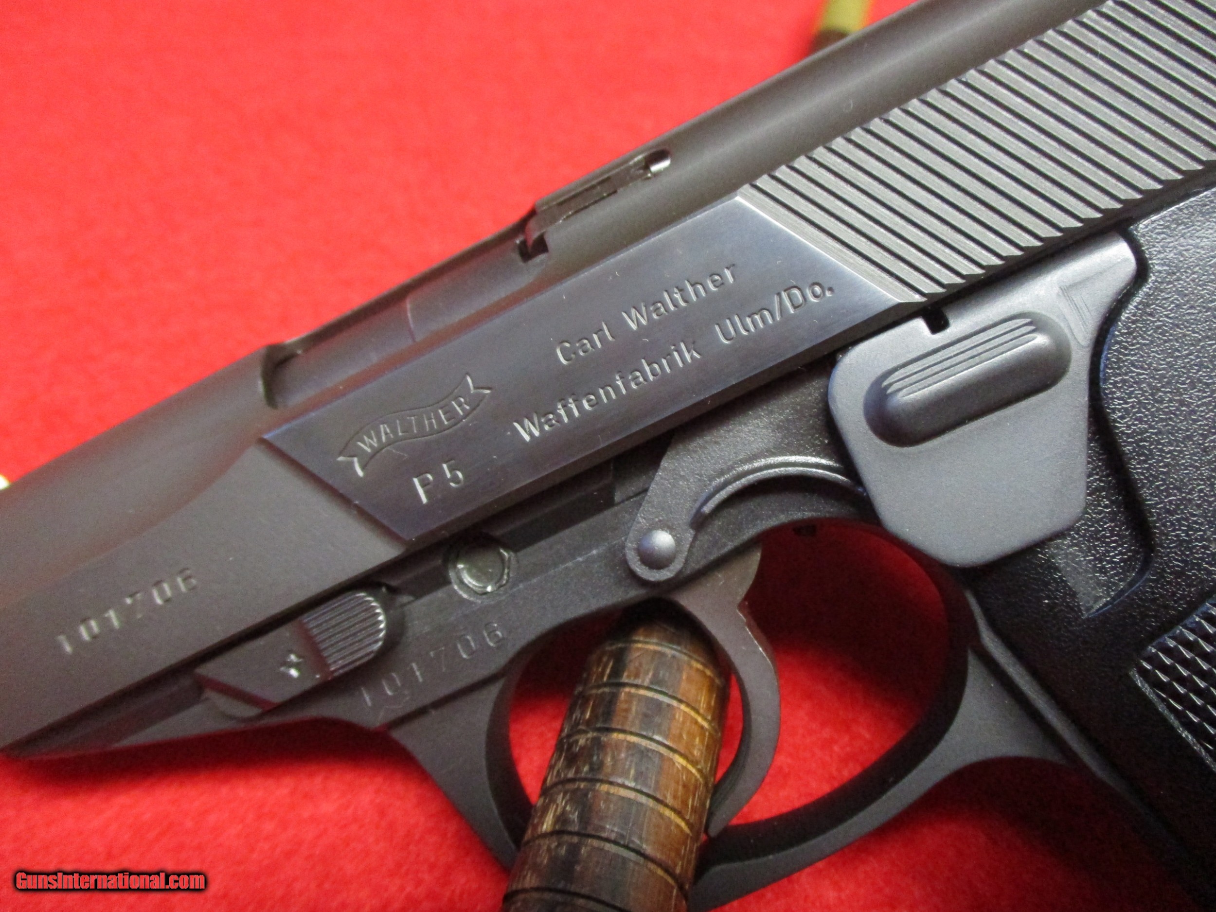 Description: The P5 was designed to replace the Walther P38/P1 pistols in use by German police. It features a shortened barrel, longer slide, and a slide release that also functions as the decocker. It utilizes the P5 magazine, which is similar to the original P38/P1 with some minor differences. The pistol operates as a DA/SA action, with the first shot being double-action and the remaining shots being fired in single-action. The pistol was imported into the U.S. by Interarms of Alexandria, Virginia. It comes in its original box with paperwork and two 8-round magazines. The pistol itself is in excellent condition. The bore has some residue in it but is in excellent condition otherwise. The bluing is in pristine condition. The P5 would make a nice addition to any Walther collection. SOLD Manufacturer: Walther Model: P5 Serial Number: 101706 Caliber Info: 9mm Parabellum aka 9mm Luger Condition: Used - Excellent Metal Condition: Excellent - Bluing 98% or better Bore Condition: Excellent - Minor Residue, no rust or pitting Barrels: 3.9 inches (100mm) Barrel Type: Short Recoil, Locked Breech Action: DA/SA Finish: Blued Sights: Fixed Extras: Spare Mag, Paperwork Case: Original Walther box |