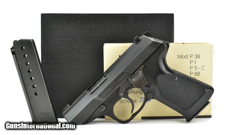 Walther P5 Compact 9mm caliber pistol. Scarce compact model Shows very light use, overall excellent condition with box, magazine, and papers.