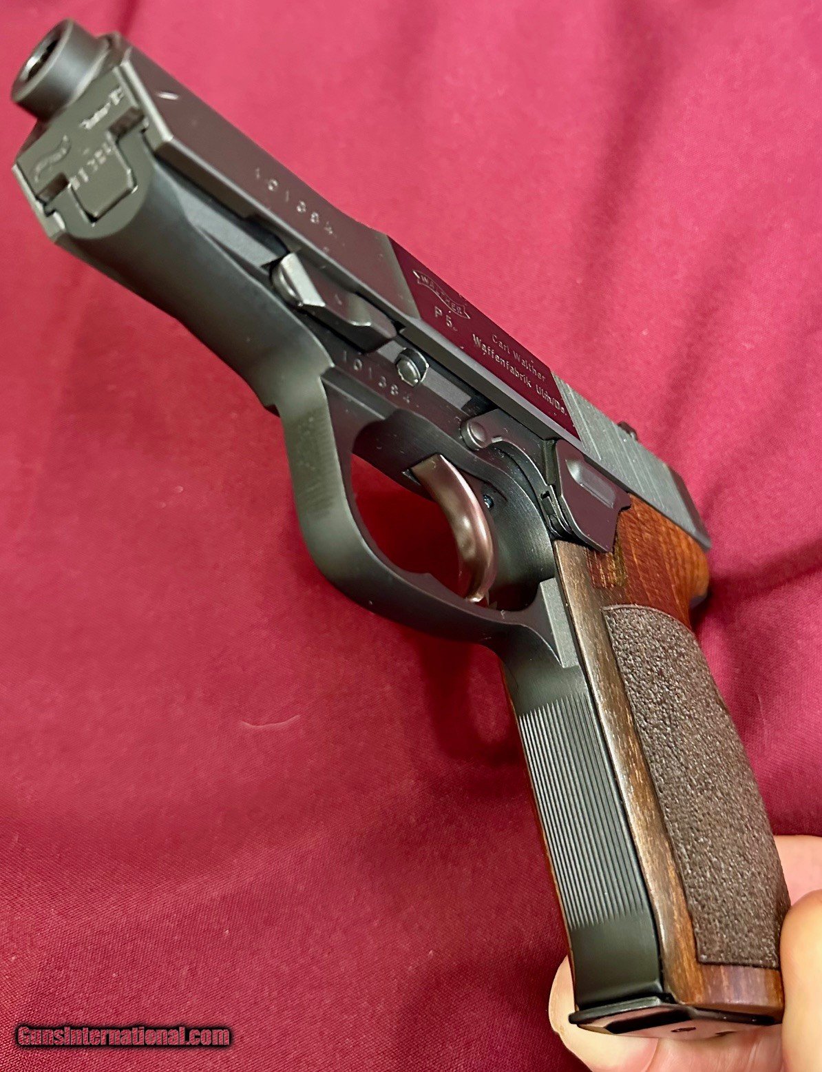 Description: This Firearm comes from an estate of a gentleman who purchased Top condition hard to find firearms, kept them in the safe, and never fired them. Available for sale is a Very Good Condition All Matching Walther Model P5 SA-DA semi-auto pistol in 9mm. Pistol is Single Stack with (Two) Walther 8-round Magazines. Pistol grip looks to be factory wood. Date code on frame of “KD” puts manufacture in 1993. Pistol was manufactured in Germany and imported by Interarms. This pistol shows some light use based on the bluing wear on the slide and friction points. Barrel is bright and has very strong lands and grooves. Frame, barrel and slide numbers are all matching serial numbers. Also, comes complete with OEM matching serial numbers hard plastic box, Owner’s manual, Matching serial numbers Test Target, Wood Grips, and Cleaning Rod. I can only ship to the lower 48 states….Sorry, but no sales to CA. Make sure this pistol is legal to transfer and own in your City/State before purchasing. Shipping will be a flat $40 in the lower 48. FFL license is required for transfer. I can only accept USPS Money orders and Certified checks as payment. Once cleared, I will ship to your FFL address only. Cannot be a PO Box. I have great feedback on GB, so buy with confidence. Please ask any questions before purchasing or making an offer! If you need more detailed pics of the pistol, please provide email and I will forward them to you. Thanks for looking! Brian SOLD Handgun Caliber: 9x19mm Parabellum (9mm Luger, 9x19mm NATO) Manufacturer: Walther Model: P5 Serial Number: 101384 Barrel Length: 3.93 Bore: 9mm Condition: Very Good Metal Condition: Excellent Wood Condition: Excellent Bore Condition: Excellent Finish: Blue Manufacture Date: 1993 Case: OEM Hard Plastic Case |