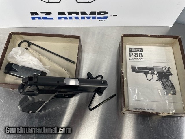 Description: Guns Listing ID: 473822 This firearm has never been fired. Comes in its original box with cleaning rod, extra mag and owners manual. Mint,Prestine,Excellent CONDITION. It has been well preserved. The Walther P88 is a semiautomatic pistol developed by the Walther company of Germany in 1988,[1] hence the model name P88. Its main feature is a high-capacity double-stacked magazine designed for military and law enforcement use. In 1996, Walther discontinued the pistol. The Walther P88 is highly prized among collectors and sport shooters due to its superb accuracy (1.5 to 2 inch groups at 25 yards) and high-quality construction. SOLD Manufacturer: WALTHER Model: P88 COMPACT Caliber Info: 9MM LUGER (9X19 PARA) Condition: Used - Non-Certified Barrels: 3.75 BARREL Finish: BLACK |