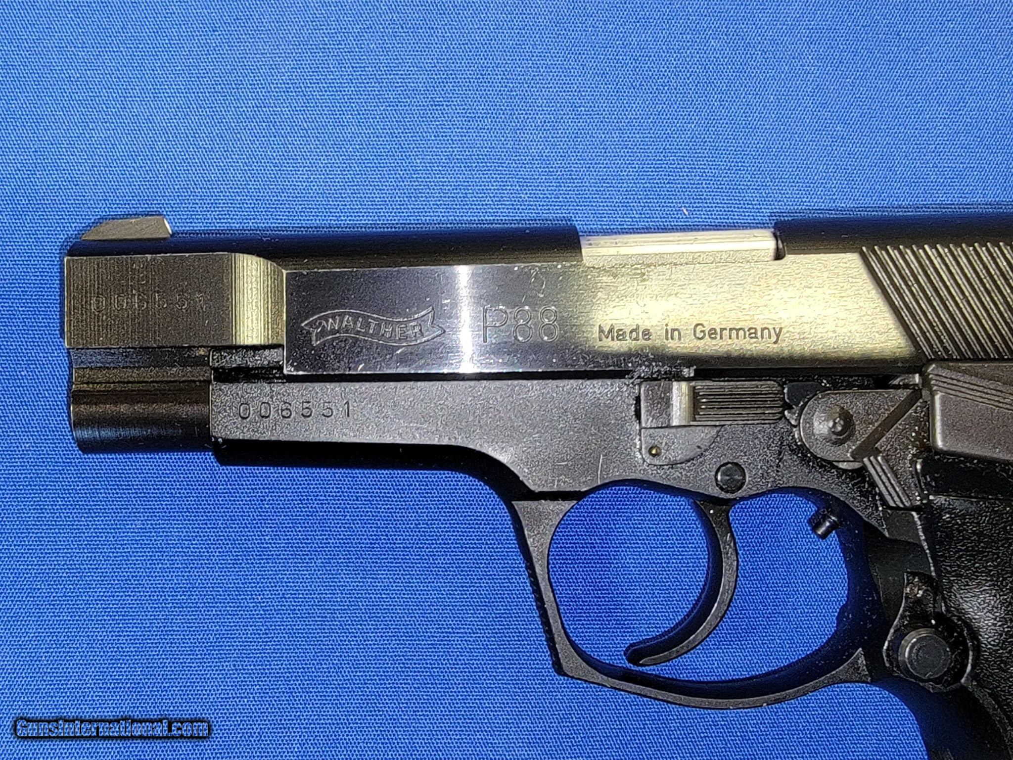 Description: Guns Listing ID: 565433 This is a Walther model P88 chambered in 9mm. It features a DA/SA, alloy frame, 4 in. barrel, 15 shot button release mag., fully ambidextrous, decocking lever, matte finish, adj. rear sight, internal safeties, plastic grips, 31 1/2 oz. This gun is in excellent condition. There are no obvious blemishes that I can see at all. Serial numbers match. Comes with original box, second magazine and all original paperwork. SOLD Manufacturer: WALTHER Model: P88 Caliber Info: 9MM LUGER (9X19 PARA) Condition: Used - Non-Certified Barrels: 4 BARREL Finish: BLACK |