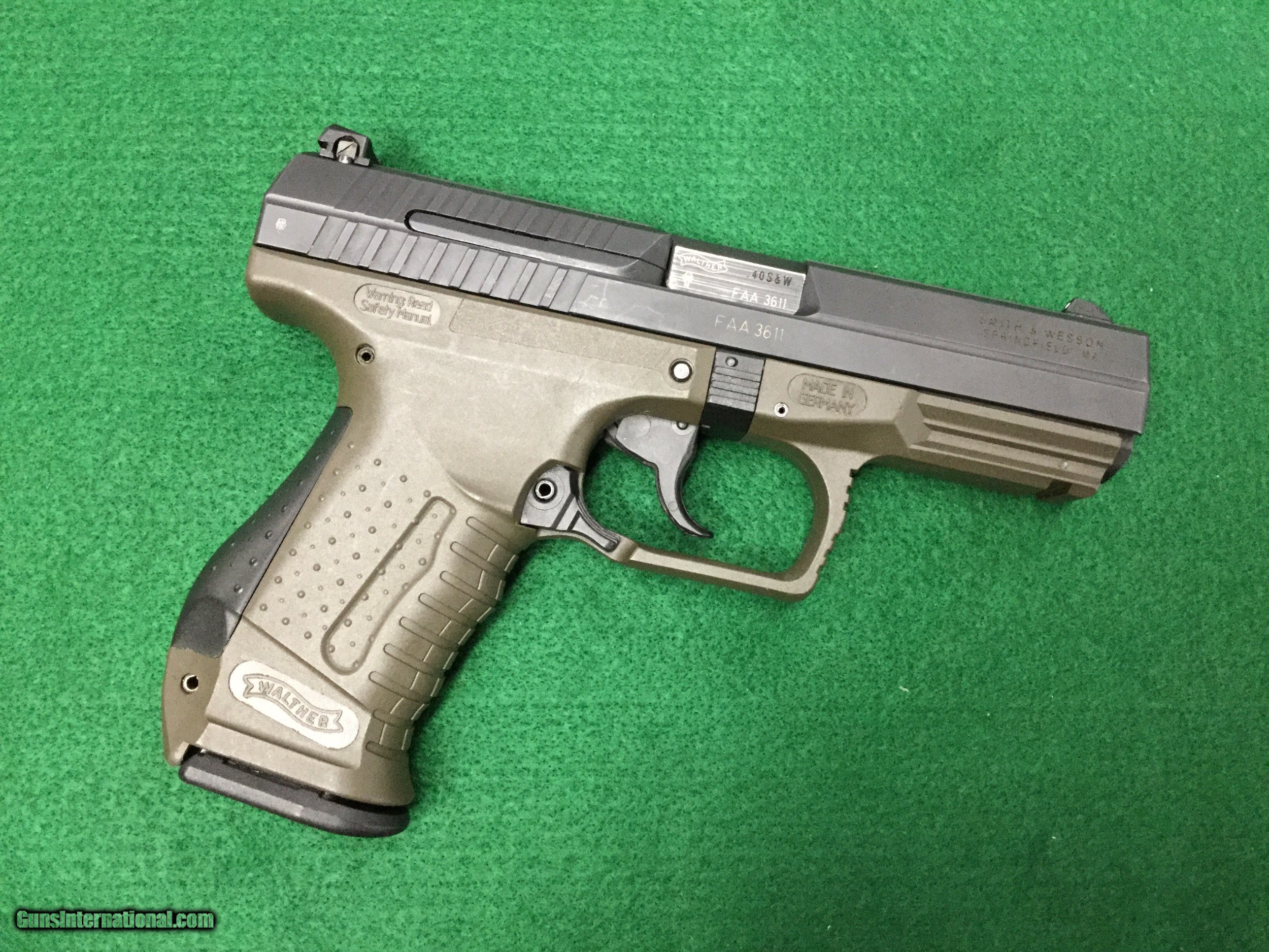 Description: ~~Used~~ Walther P99 OD green frame chambered in 40s&w. Includes factory box and paperwork. $399.99 plus $30.00 shipping. Add 3% for credit card payments. SOLD |