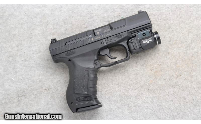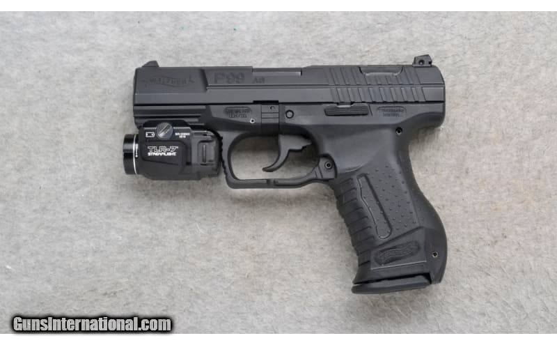 Description: This Walther Model P99 AS is a right hand semi-auto pistol in 9mm Cal. It has a 3.75 inch barrel with a rear serrated slide. A blade front sight and notch rear sight with white sight dots. It is outfitted with a Streamlight L.E.D. white light. The grip is a textured black polymer. It has a lower accessory rail. The paddle magazine release is in the trigger guard. 9mm Parabellum SOLD Chambers: 15 round magazine. Metal Condition: Excellent. Bore Condition: Excellent. Barrels: 3.75 inch barrel with a rear serrated slide. Weight: 28 oz. Sights: Blade front. Adjustable notch rear. 3 white sight dots. Streamlight TLR-7 White L.E.D. light. Item Location: Richfield, WI |