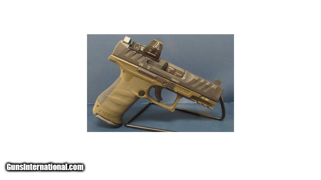 Description: Guns Listing ID: 552170 The Walther PDP is a compact, striker-fired semi-automatic pistol design featuring a 4\" barrel and a striking black slide paired with a vibrant OD green frame. This 9mm firearm is equipped with tall night sights and an optics-ready design with an Ameriglo Red-Dot for enhanced accuracy in various lighting conditions. With ambidextrous controls and a capacity of 15 rounds, it caters to both right and left-handed shooters. The package includes two magazines, a Walther hardshell case, and essential accessories. SOLD Manufacturer: WALTHER Model: PDP Caliber Info: 9MM LUGER (9x19 PARA) Condition: Used - Non-Certified Barrels: 4 BARREL Action: SEMI AUTOMATIC Finish: black and green |