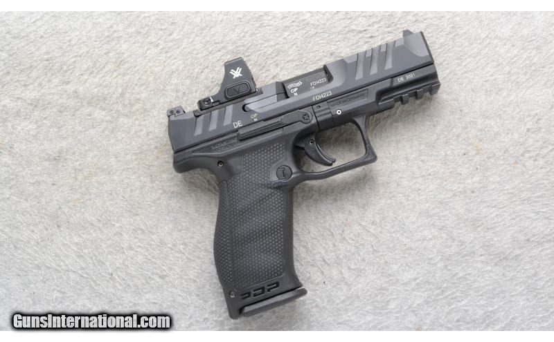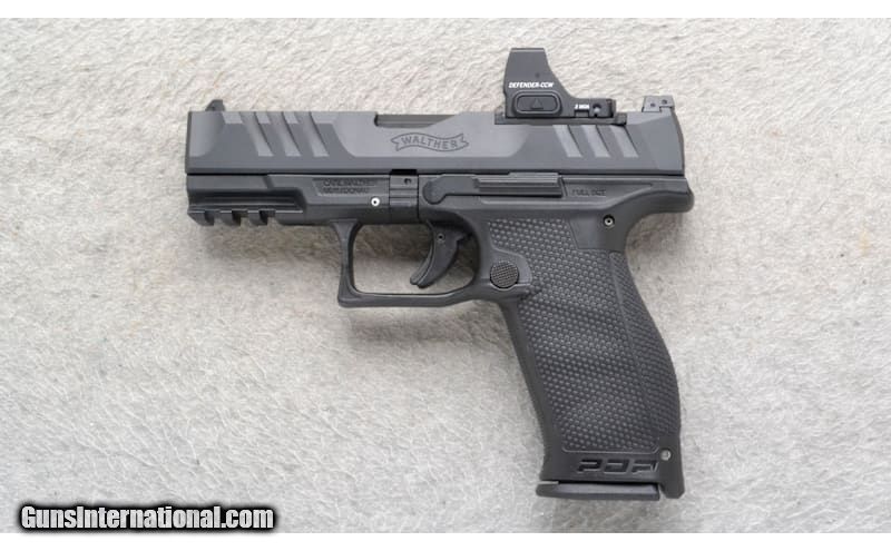 Description: This Walther Model PDP is a right hand semi-auto pistol in 9mm Cal. It has a 4 inch barrel with a front and rear deep serrated slide. A blade front sight and notch rear sight, both with white sight dots. It is outfitted with a Vortex red dot sight. The grip is a textured black polymer. It has a lower accessory rail. 9mm Parabellum SOLD Chambers: 18 round magazine. Metal Condition: Excellent. Bore Condition: Excellent. Barrels: 4 inch barrel with a deep serrated front and rear serrated slide. Weight: 26 oz. Sights: Blade front. Adjustable notch rear. White sight dots. Vortex Defender CCW red dot sight. Item Location: Richfield, WI |
