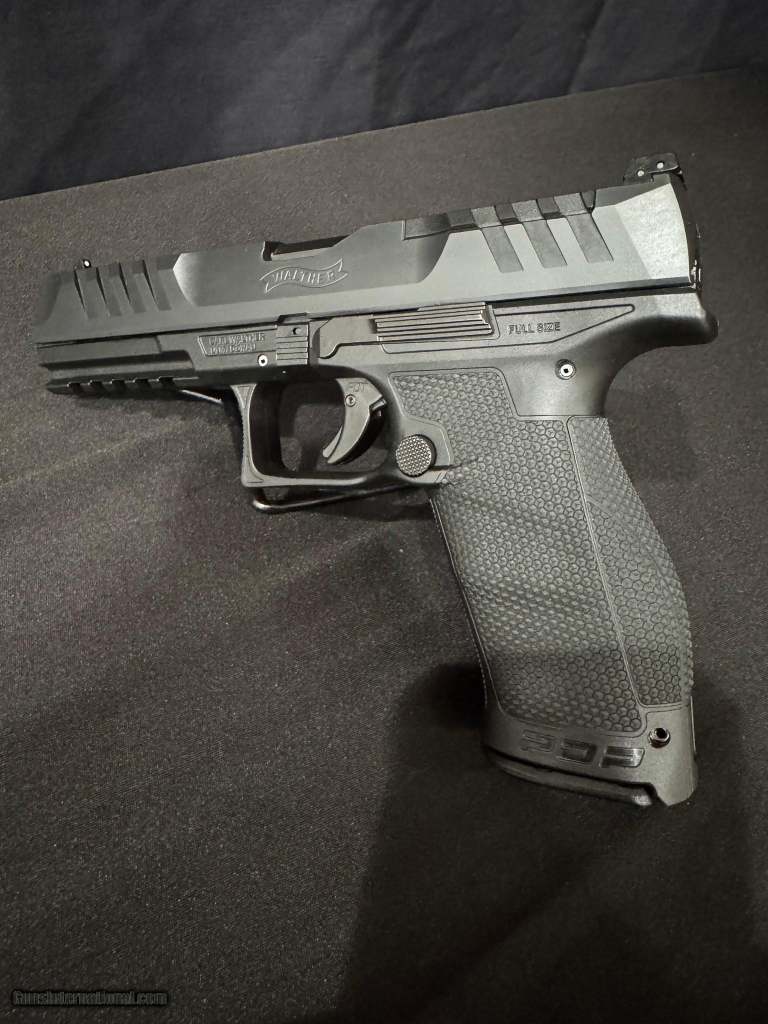 Description: Guns Listing ID: 621201 Walther Arms PDP Full Size Optic Ready – 5\" Barrel – 9mm Manufacturer: Walther Arms Model: PDP Full Size Caliber: 9mm Luger Barrel Length: 5 inches Action: Striker-Fired Capacity: 10+1 (accepts PDP/PPQ magazines) Description: Offered for sale is a Walther Arms PDP Full Size Optic Ready pistol with a 5-inch barrel, chambered in 9mm. The PDP is known for its exceptional ergonomics, outstanding factory trigger, and aggressive Super Terrain slide serrations for positive manipulation. This pistol comes optic ready from the factory, allowing direct mounting of red dot optics using Walther optic plates (not included unless stated). The full-size frame provides excellent control and shoot ability, making it ideal for duty use, competition, or range shooting. Product Information Finish Blue/Black Caliber 9mm Barrel Length 5 Capacity 10 Sights Night Sights Type Pistol Action Semi-Auto Manufacturer: WALTHER Model: PDP FS Caliber Info: 9MM LUGER (9x19 PARA) Condition: Used - Non-Certified Barrels: 5" BARREL Action: SEMI AUTOMATIC Finish: black Price: $599.99 Contact Seller |