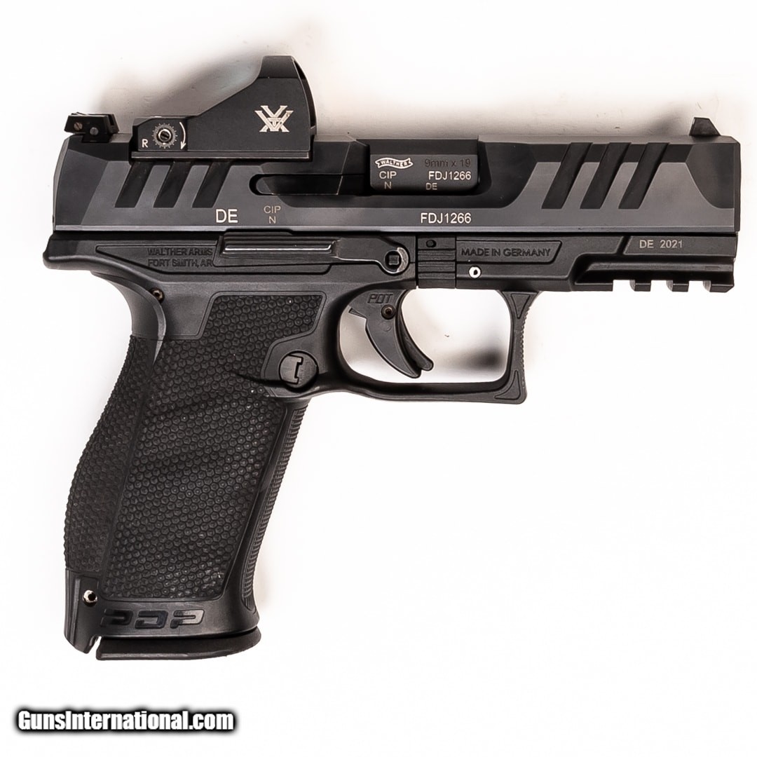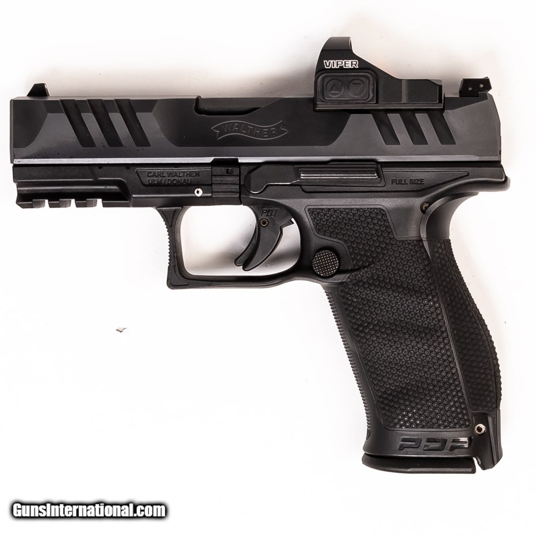 Description: Guns Listing ID: 482938 Walther handguns are known for their exceptional triggers, comfortable ergonomics, and second to none reliability. The PDP model turns the screw on performance and will make a heck of a shooter and self-defense sidearm. This PDP Full-Size is equipped with a Vortex Viper red dot with attachment plate. Purchase includes the original case, manual, two 18-round magazines, three sizes of backstraps, loader, and the original top optic plate. SOLD Manufacturer: WALTHER Model: PDP FULL SIZE Caliber Info: 9MM LUGER (9X19 PARA) Condition: Used - Certified Barrels: 4 BARREL Finish: BLACK |