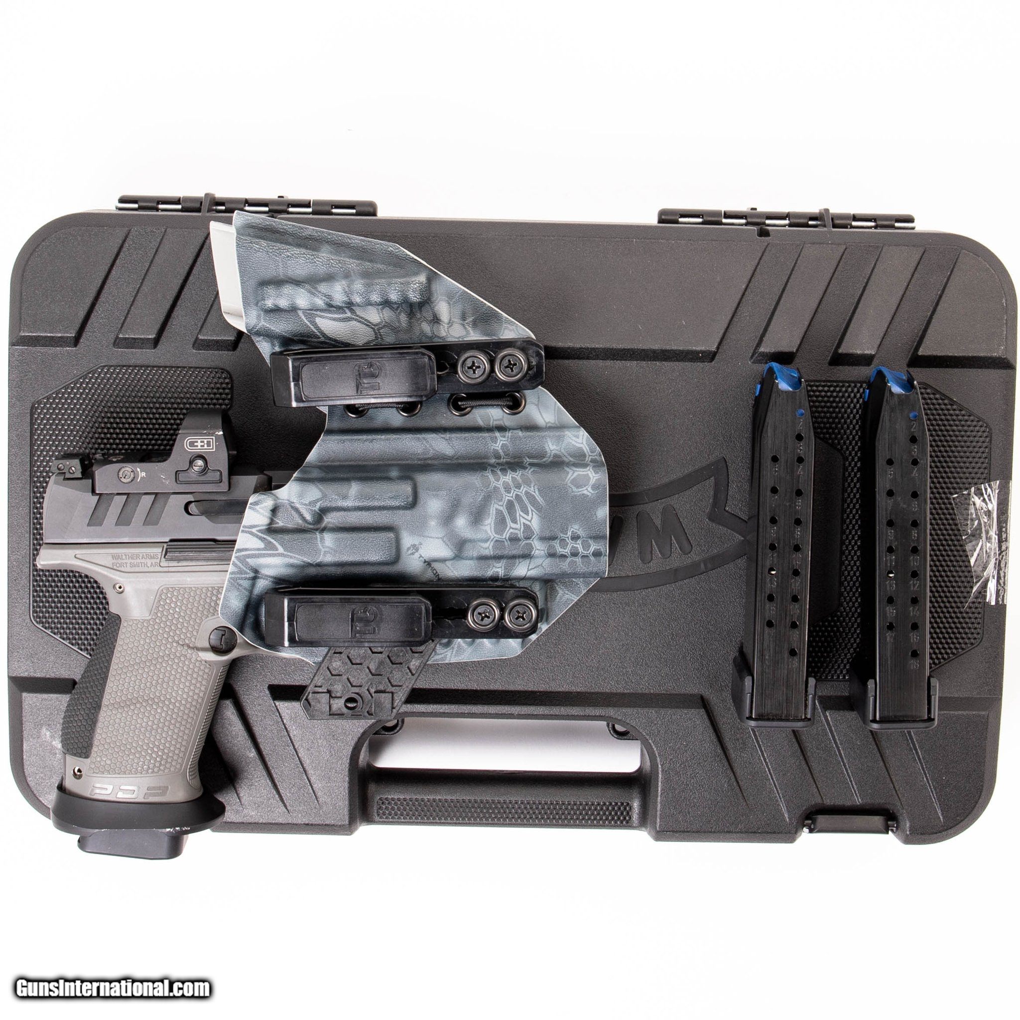 Description: Guns Listing ID: 505264 This Walther comes with three 18-round magazines, the original case, owner‚‚s manual, extra backstraps, a flared magwell, a threaded barrel, a right-hand Tier 1 Axis Elite holster and it‚‚s equipped with a C&H Precision red dot optic. Get the best bang for your buck when you get a Certified Used Firearm . When you see the Certified Used stamp on any of our firearms, you can be confident that you’re getting exactly what you want – a gun only in very good to excellent condition and held to the highest quality standard. All Certified Used Guns come with a ‘no questions asked’ return policy . PLUS, ALL CERTIFIED USED GUNS SHIP FREE! SOLD Manufacturer: WALTHER Model: PDP PRO SD COMPACT Caliber Info: 9MM LUGER (9x19 PARA) Condition: Used - Certified Barrels: 4.75 Action: SEMI AUTOMATIC Finish: black/gray Weight: 1.8 |