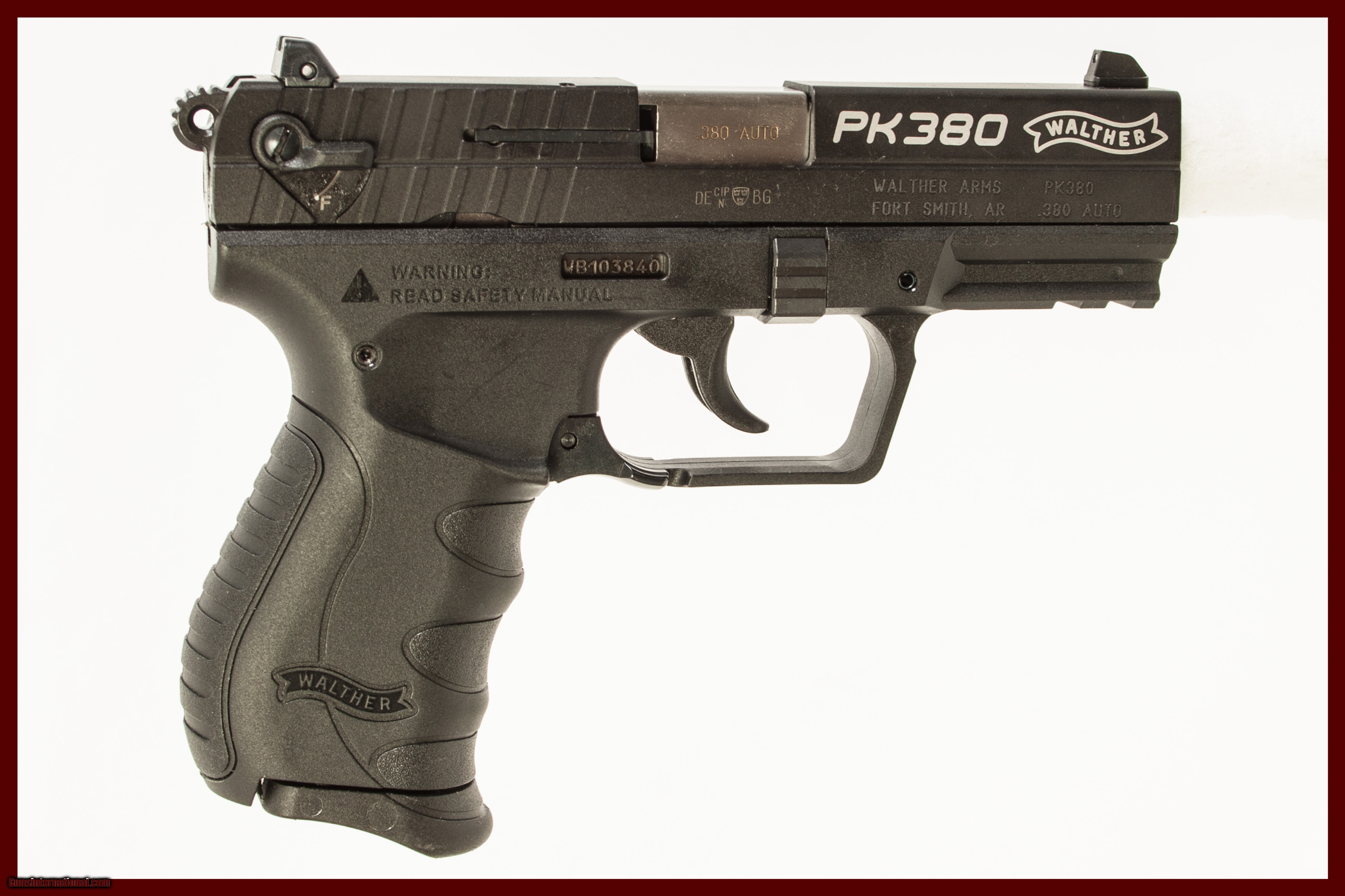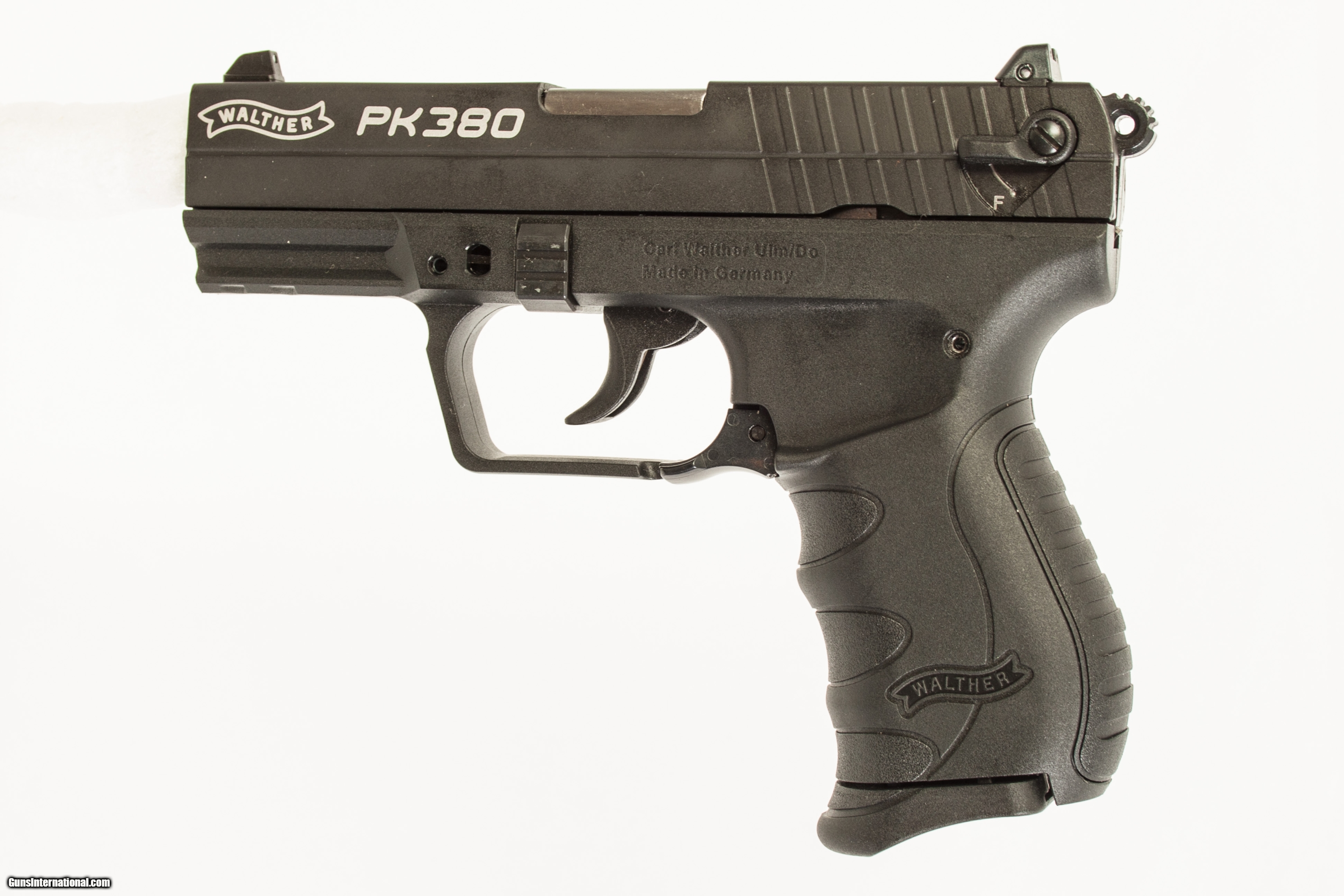 WALTHER PK-380 CHAMBERED IN 380ACP WITH A 3.75 INCH BARREL COMES WITH CASE. THIS GUN IS IN GOOD CONDITION AND IS COVERED BY DURY'S LIFETIME WARRANTY.