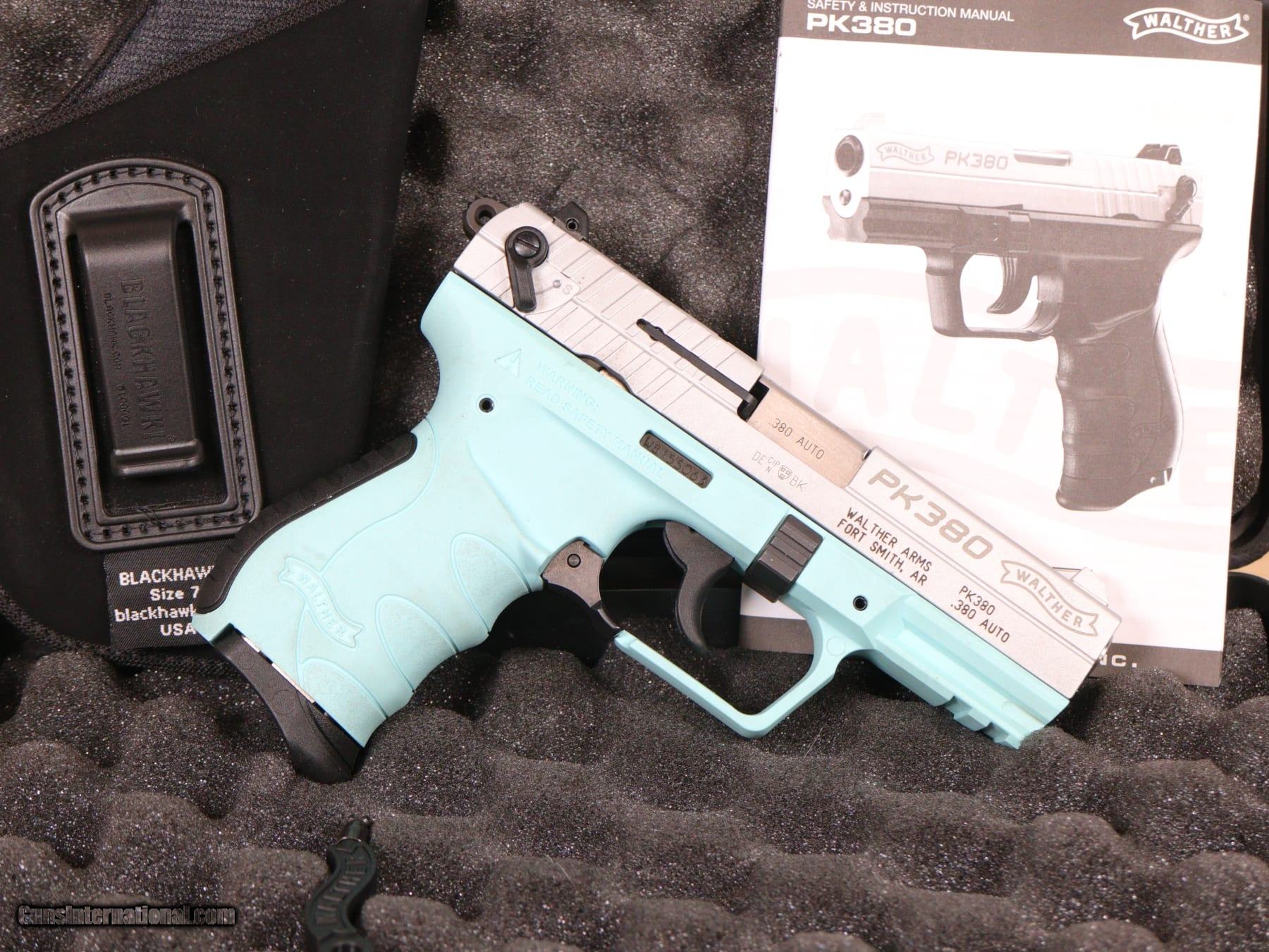 Description: Guns Listing ID: 1094290 Walther PK380 Sliver/Angel Blue 1 Mag, Box, Holster SOLD Manufacturer: WALTHER Model: PK380 Caliber Info: .38 SPL Condition: Used - Non-Certified Barrels: 3.6 BARREL |