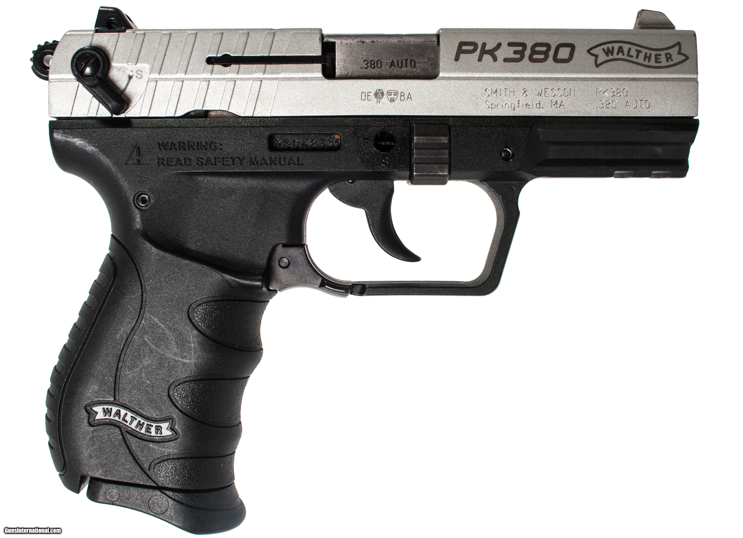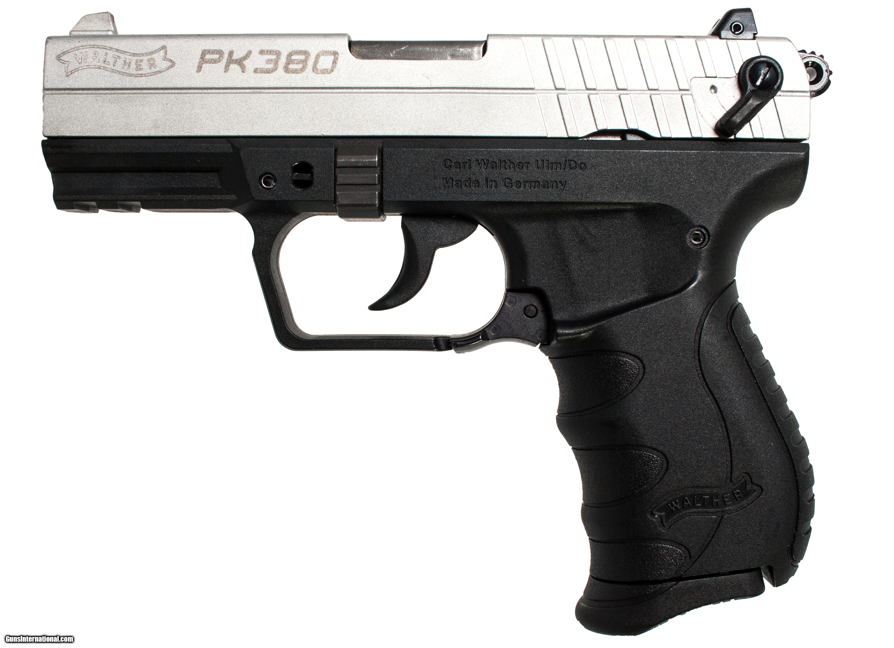 Walther PK380 chambered in 380 acp with a 4 inch barrel and a case. This gun is in excellent condition and is covered by Dury's Lifetime Warranty.